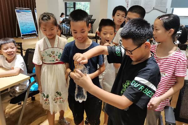 8月7日早上,岩河社区里热闹非凡,小朋友们迎来了一节由宁波职业技术学院的志愿者朱陈仔带来的趣味科学实验课。