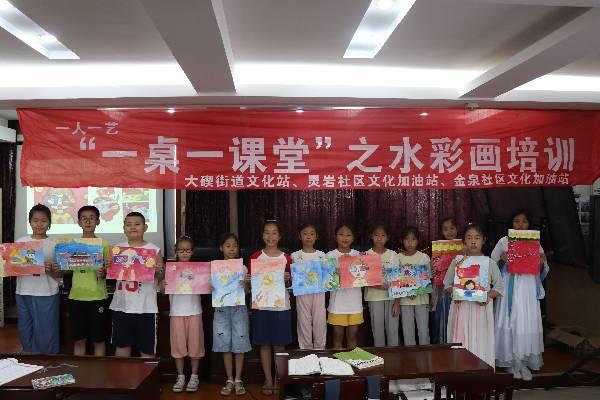 为提升灵岩、金泉社区假日学校学员们的艺术修养,提高他们对党的认知,7月20日上午,大碶街道文化站、灵岩社区文化加油站和金泉社区文化加油站再次邀请宁波职业技术学院的徐老师及三位助教以“小手绘党旗 童心永向党”为主题开展第三堂绘画课程。
