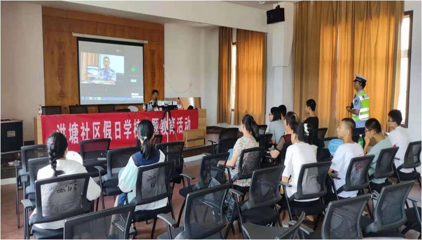 8月23日上午,洪塘社区开展暑期学生假日活动,为学生普及交通安全知识,提高遵守交通法规的意识,帮助辖区学生养成良好的交通安全习惯。社区邀请洪塘交警大队为我社区青少年讲解交通安全知识,教育从小做起。