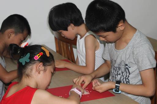 本次活动让小朋友亲手制作大家看得见、够得着的“文化作品”,不仅是对传统文化的传承,更有助于爱国主义的传承。在社区周老师指导下,每个小朋友都全身心投入,用织布、种子、纽扣、丝线等多样的创作材料,通过裁剪、粘贴、拼接、组装,一幅幅红色艺术作品折射出强劲而有力的生命力及民族气魄和风度。