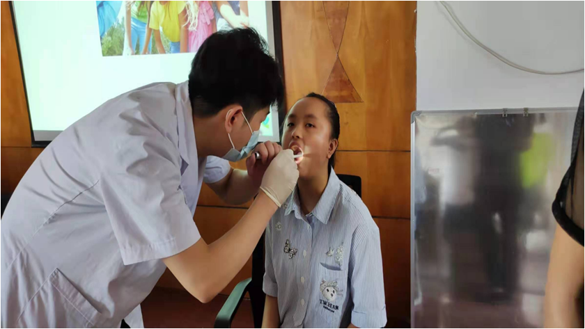 来自牙科医院的王医生先通过PPT课件讲述,生动、形象地为在座的同学们讲解了正确的刷牙方法、龋齿的形成和预防以及口腔结构等知识,帮助同学们正确认识口腔健康的重要。随后以互动的方式沟通,为同学们现场检查牙齿,大家踊跃参与活动,现场气氛非常活跃。
