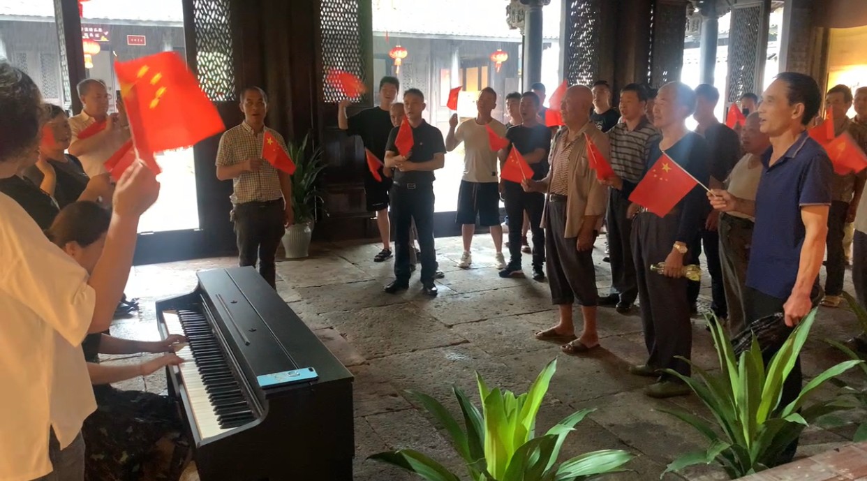我校协助东门外村组织的东门外村每月一次的党员学习雷打不动,同时结合各类人群进行主题教育:村级老年学校学员讲党史、新市民培训开展“心永远向党”座谈会、青少年寻找红色的遗迹……还有我们最可爱的退伍军人,欢聚一堂,共唱红歌,共忆党走过的光辉历程。一首首熟悉的歌曲,让人情不自禁地哼唱起来:“没有共产党就没有新中国”“我和我的祖国,一刻也不能分割。无论我走到哪里……”新老退伍军人,尽管年龄各不相同,但是热爱祖国、热爱我党的心情是相通的。