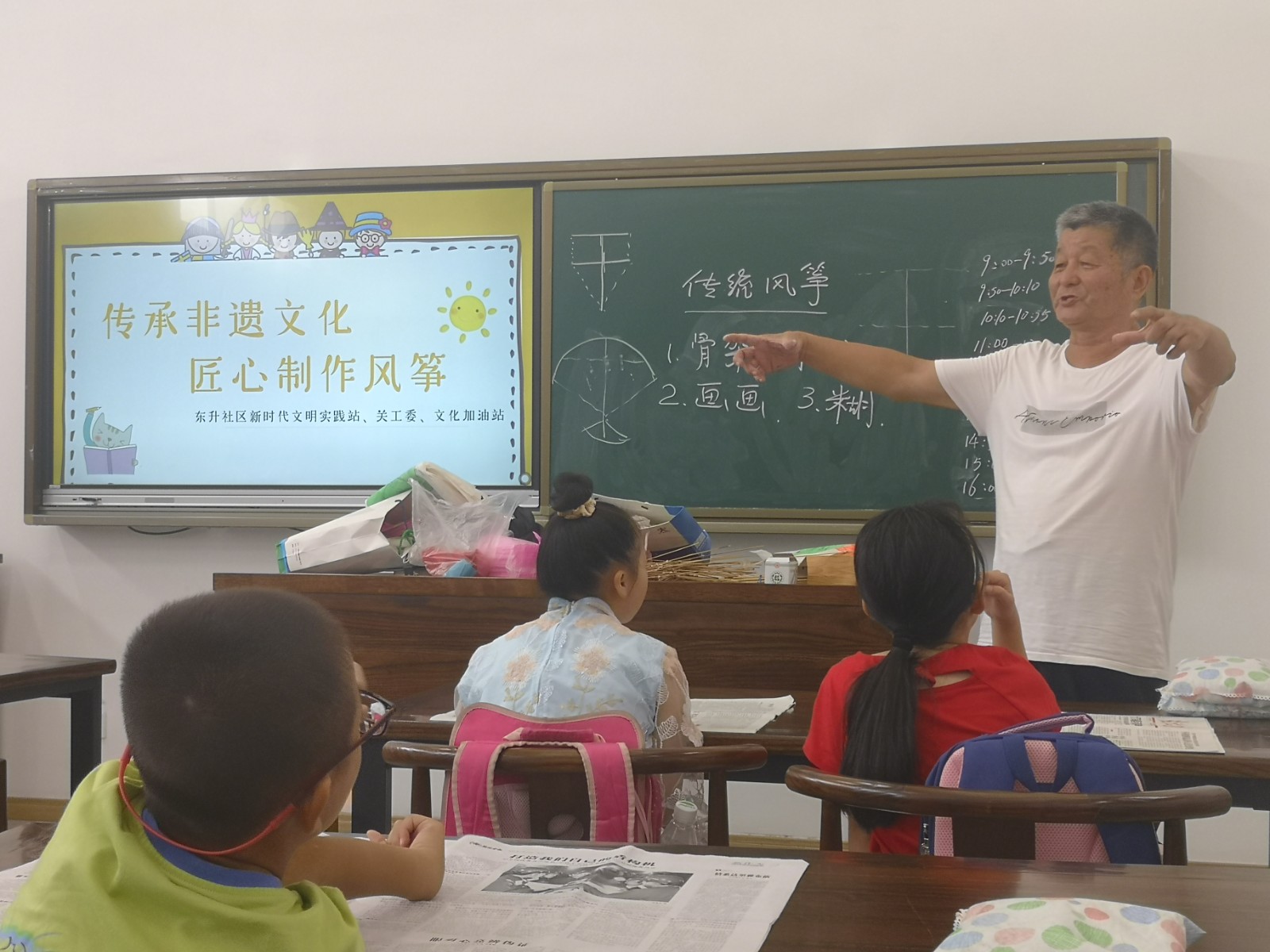 东升社区:非遗文化之传统风筝制作走进假日学校