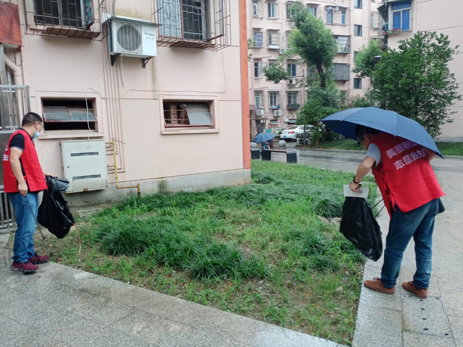 虽然天下着小雨,但志愿者们积极发挥不怕苦、不怕累的精神,奋力争先,专心致志地清扫,不放过任何一处垃圾、任何一块“死角”,将社区公共区域内乱丢的白色垃圾、烟头、纸屑、小广告等进行清理、清除。