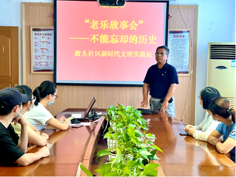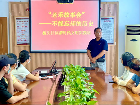 9月3日是抗日战争胜利76周年纪念日,为了铭记这段饱含血与泪的历史,缅怀先烈,弘扬伟大抗战精神,渡头社区新时代文明实践站在文化礼堂二楼会议室开展“老乐故事会”宣讲活动。