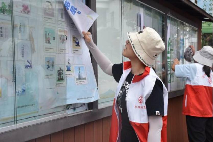 春晓成校巾帼志愿者成员和三山村巾帼美城岗的志愿者们,在清理宣传栏的同时,也不忘向路过的居民宣传垃圾分类、文明典范城市创建的相关政策,致力形成保护环境人人参与,创建文明典范城市人人有责的良好氛围。