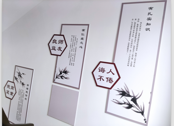 6月下旬,学校积极联系广告公司,与广告公司共同磋商设计方案,设计的主题紧扣“ 办特色教育,育创新人才”,对广告公司设计的效果以最快的速度进行修改、审稿、定稿。最终确定了以“博、学、勤、廉”入手,展示了从《论语》、《三字经》等古典内容中精选的“德、诚、信、敬”语句及鲁迅等教育名人的事迹和反映成校工作的社区教育、老年大学、青年学习等方面的的30余幅壁画。历时近二月的时间,所有文化墙于8月下旬完工。文化墙的建成无疑给成校带来一股浓郁的“书香气”,成为校园的一个亮点,也充分发挥成校环境的隐性教育功能。