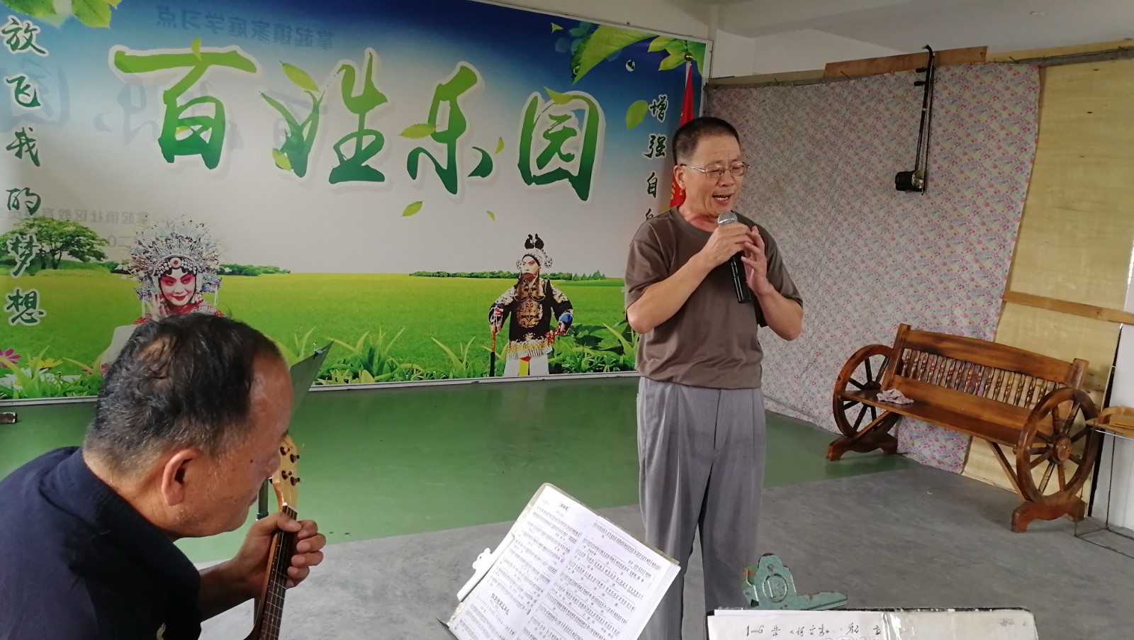 声音清雅,曲调婉转,一首经典唱段《何文秀·凤冠霞帔谢夫人》随着悠扬的伴奏声从掌起镇戎家村的一栋三层小楼房里传来。9月7日,设在戴振祥老师家的家庭学习点“百姓乐园”开班,附近的戏曲爱好者相聚在一起唱上几段,切磋技艺。