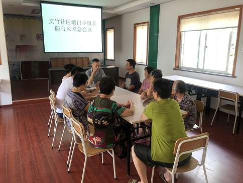 9月12日上午9时, 文竹社区召开居民小组长防台风紧急会议,动员居民力量参与社区防台,全力做好防台防汛准备工作。