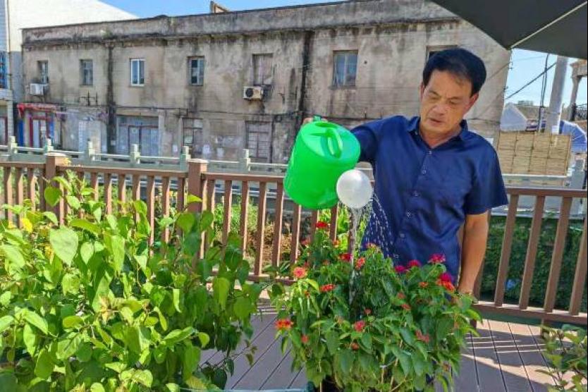 北仑社教中心新浦分中心:这位路长“管得宽”!每天拉水管冲洗游步道,还自费采购植物、户外遮阳伞……