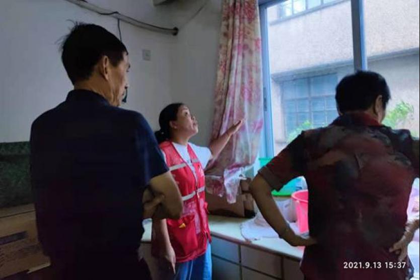 “这个墙面渗水问题很严重,等台风过后一定要及时修缮,期间,使用电器时一定要注意安全。”日前,新浦社区“人亚先锋”志愿者走进老旧集资房,送上台风天的温馨“小贴士”。  这座老旧集资房位于朝北街上,建于90年代,面临台风“灿都”的持续影响,房子单侧墙面出现了渗水现象,窗户边上放置着大大小小的接水桶,顶上还不时有水滴漏下来。  新浦社区人亚先锋志愿者向住居民普及了台风最新动态信息,并介绍了最近的避灾点,要求居民时刻关注房子情况,特别强调了家用电器的安全使用,一经发现漏电要马上断电。这里还有不少企业职工租住在这里,人亚先锋志愿者提醒职工要注意自身安全,及时督促房东对漏水区域进行修缮,避免漏水情况加剧,保障居住安全。