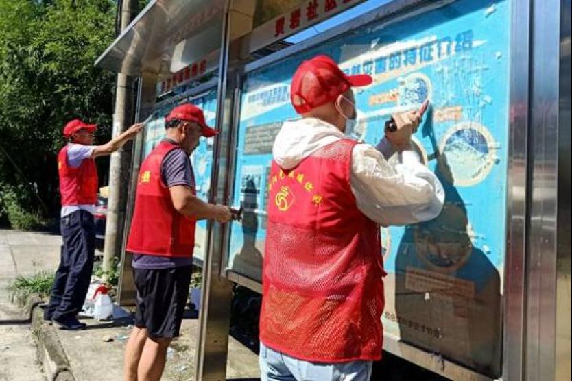 活动开始前,灵岩社区的社工们组成“社区找茬团”到所管辖的网格中去排摸垃圾死角及小广告点位、发动党员志愿者、灵煦E乡志愿者及热心居民加入到环境整治志愿服务活动中来。随后,大家披上红马甲,戴上小红帽,拿起清洁工具,分组进行清理。卫生清洁志愿小分队负责清理社区绿化带和草坪垃圾,花丛中隐藏的塑料垃圾袋是最难清除的,志愿者们弯下身姿,徒手把细碎垃圾一点点取出来;另一边的牛皮癣清理志愿小分队使劲地铲除电线杆、宣传窗和墙面随处可见的小广告,清理完牛皮藓还不忘清理附近角落里的细碎垃圾,确保清理无死角。志愿者们不怕脏不怕累,经过一天的辛勤努力,老社区“旧貌换新颜”,夕阳下的红马甲越发鲜艳,依旧是是历久弥新最时尚的“经典配色”。