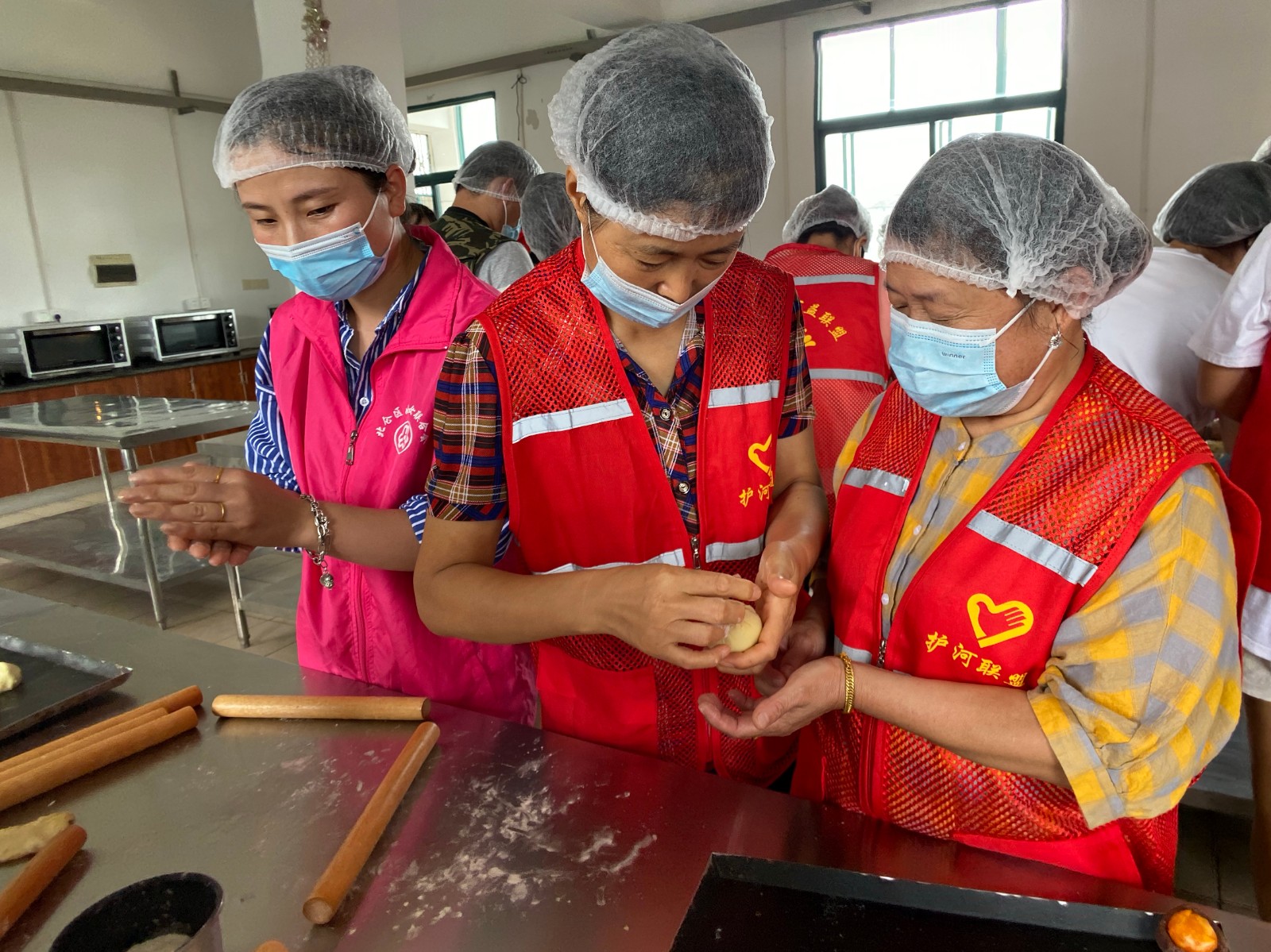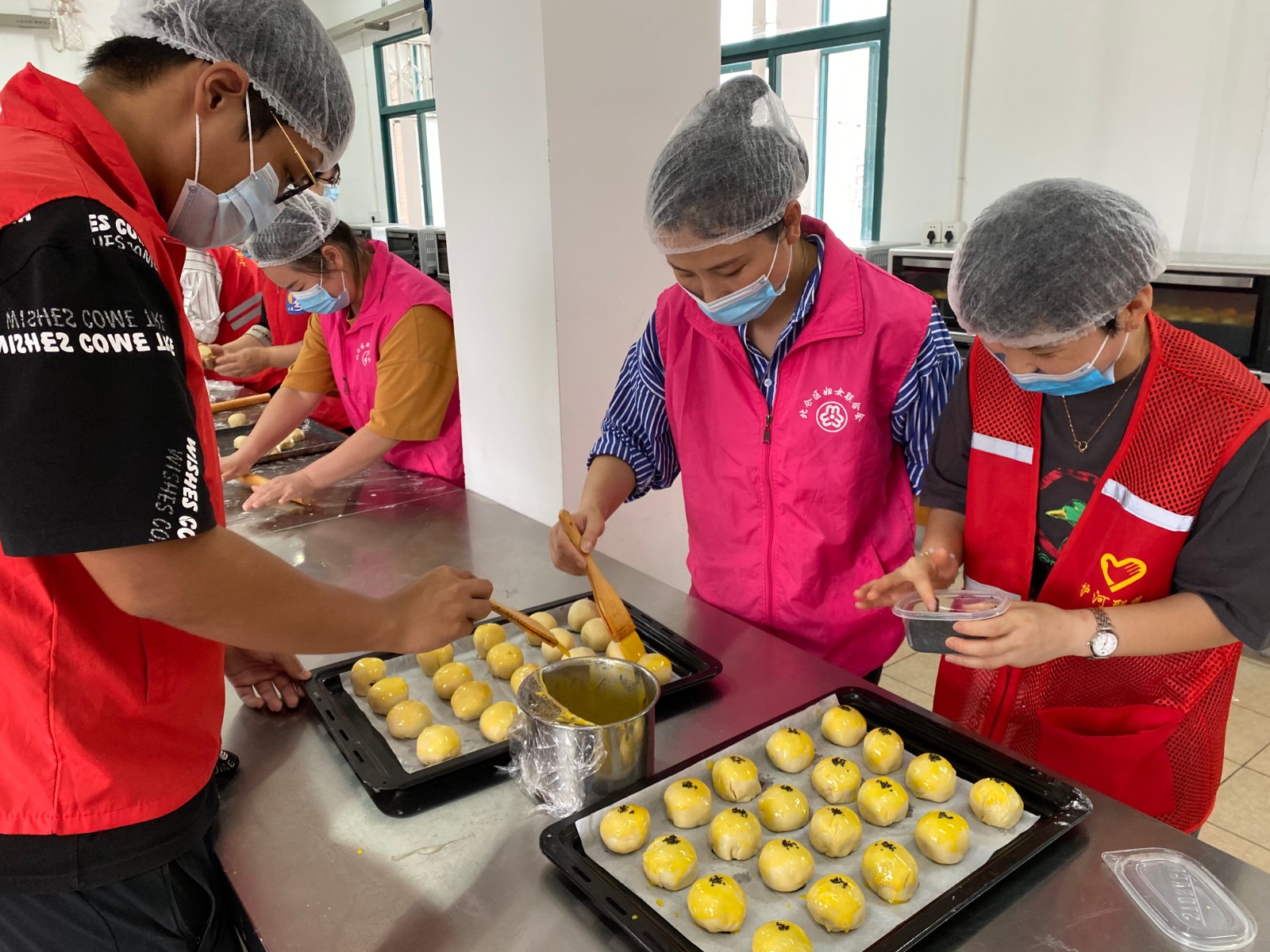 9月16日,青墩社区党群服务中心组织志愿者和退伍军人在成人学校四口烘焙教开展“中秋志愿情 团结一家亲”活动。