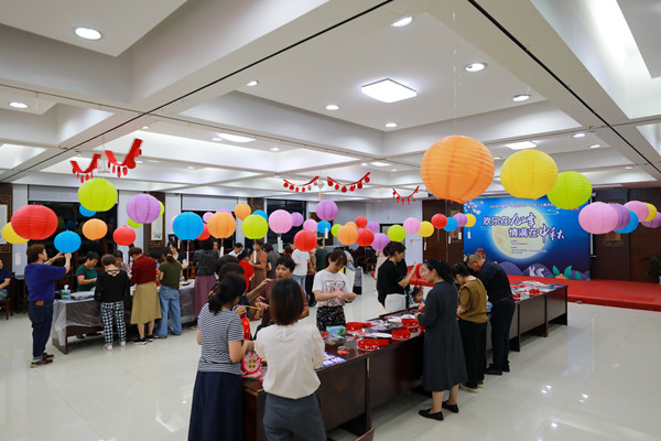 活动现场,大家亲手写下心愿祝福挂在灯笼下,“家人身体健康”、“天天开心”、“孩子健健康康”……一句句质朴的祝福,寄托了对美好生活满满的向往。DIY手工小灯笼,老底子月饼烤制,中秋小故事分享……丰富多彩的中秋体验活动,更是让大家在热热闹闹的氛围中感受到中秋其乐融融的团圆味。“这是我第一次自己亲手做月饼,看着卖相交关好,回去我要给我老头子尝尝。”拿着亲手制作的月饼,陈阿姨兴奋地说道。