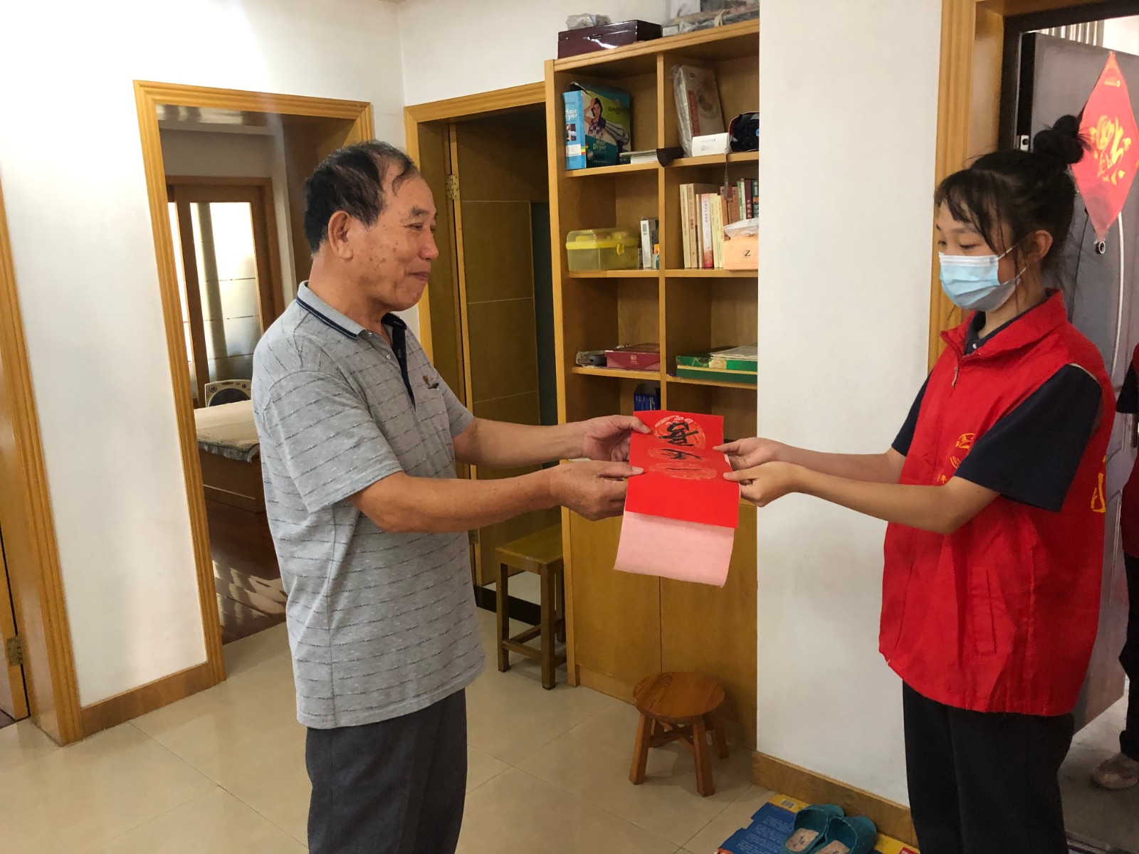本次看望的老党员是住在江南人家的乐锡昌师傅,孩子们带着自己亲手写的对联和中秋祝福来到乐师傅的家里,乐师傅热情的接待了孩子们,随后乐师傅拿出自己获得的“光荣在党50年”纪念勋章给孩子们看并讲述了当年自己入党的情景。最后,乐师傅鼓励孩子们要好好学习,热爱祖国,听党话跟党走,将来成为一个有用之才。