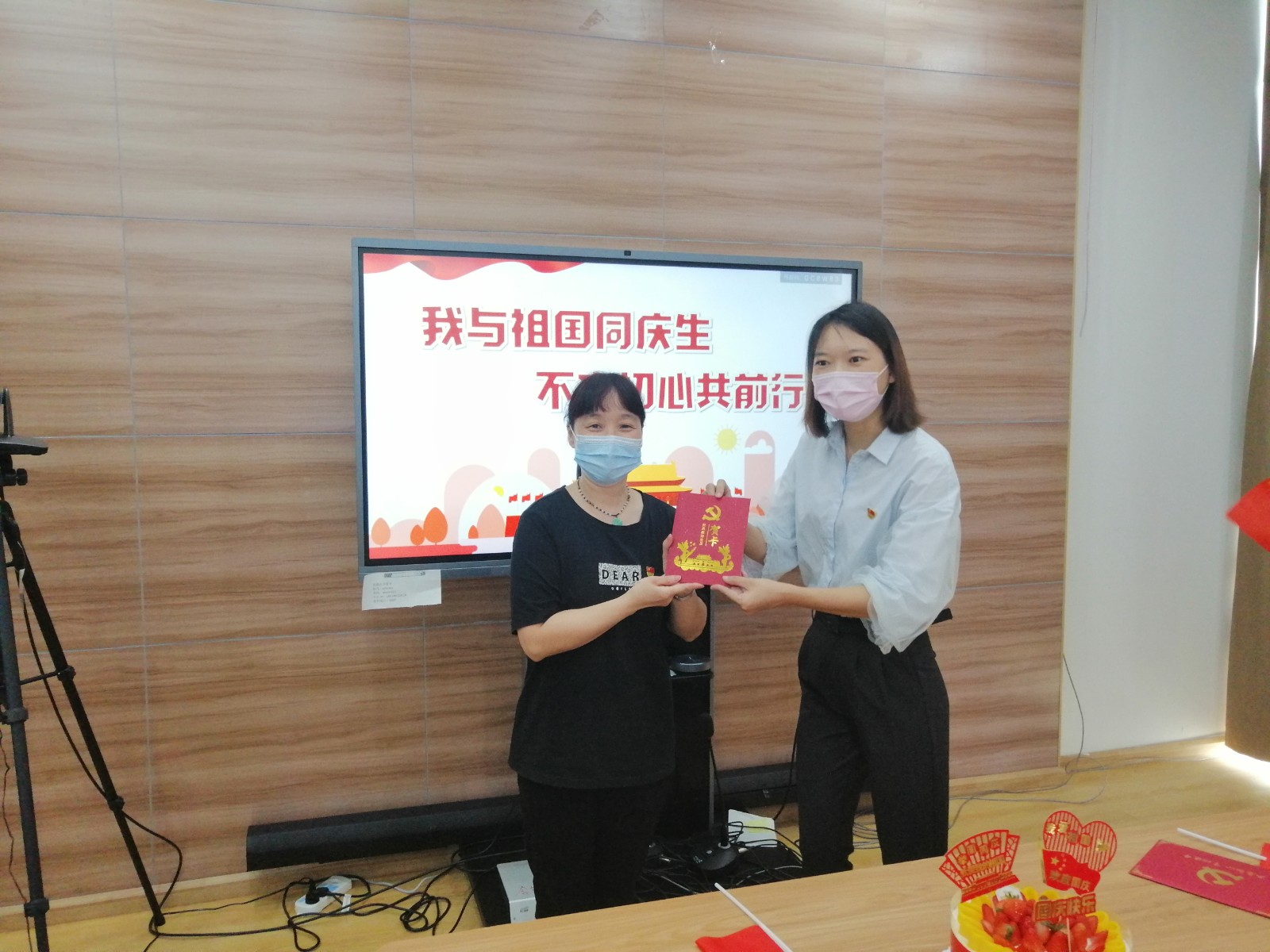 同时,新晨社区党总支还邀请了部分党员来到社区,共度他们10月的“政治生日”。入党如新生,伴随着“共产党员”的新身份,党员的政治生命随之开启,也就拥有了自己的“政治生日”。当党员在鲜红的党旗下郑重宣誓“我志愿加入中国共产党”,便意味着作出了坚定信仰共产主义的政治抉择,作出了将自己的一切交给党的庄严承诺。这样一个人生的重要时刻,理应被深深铭记。在祖国祖国我爱你的歌声中,大家一起吹灭了生日蜡烛,提前与祖国共庆生。