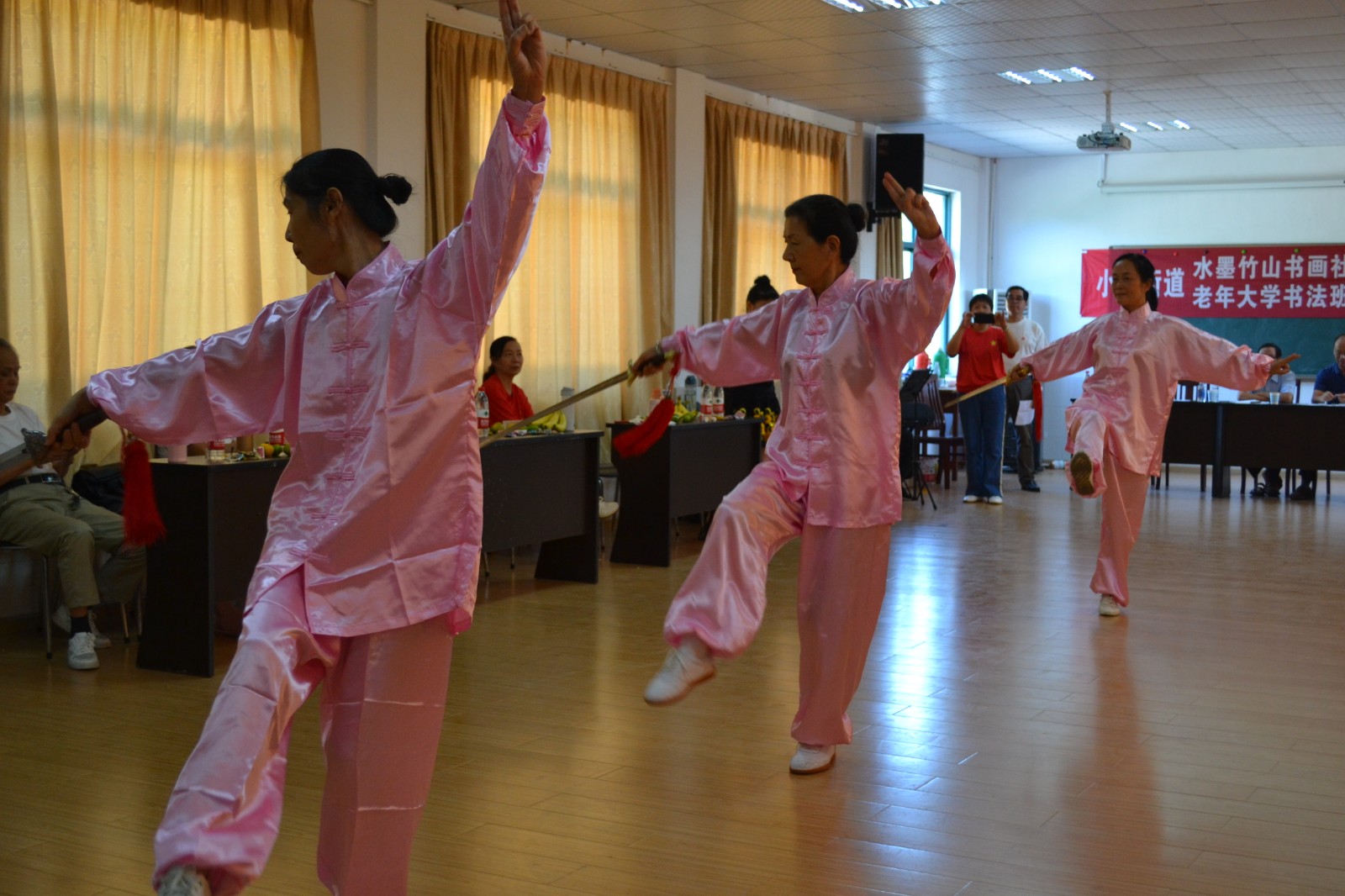 本着老有所学、老有所乐。大家排演了二十余个精彩节目。茶话会在一曲《保卫黄河》拉丁舞中打开序幕。学员之间、书友之间,欢聚畅谈。大家切磋书画技艺,交流学习心得。泼墨挥毫,载歌载舞。最后全体合唱《歌唱祖国》,每个人都用洪亮而饱满的声音吟唱着,心中油然而起万千感慨。大家用这质朴优美的文艺方式,表达了对党的真挚情感和对祖国的无限热爱。