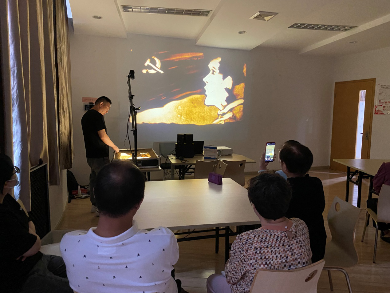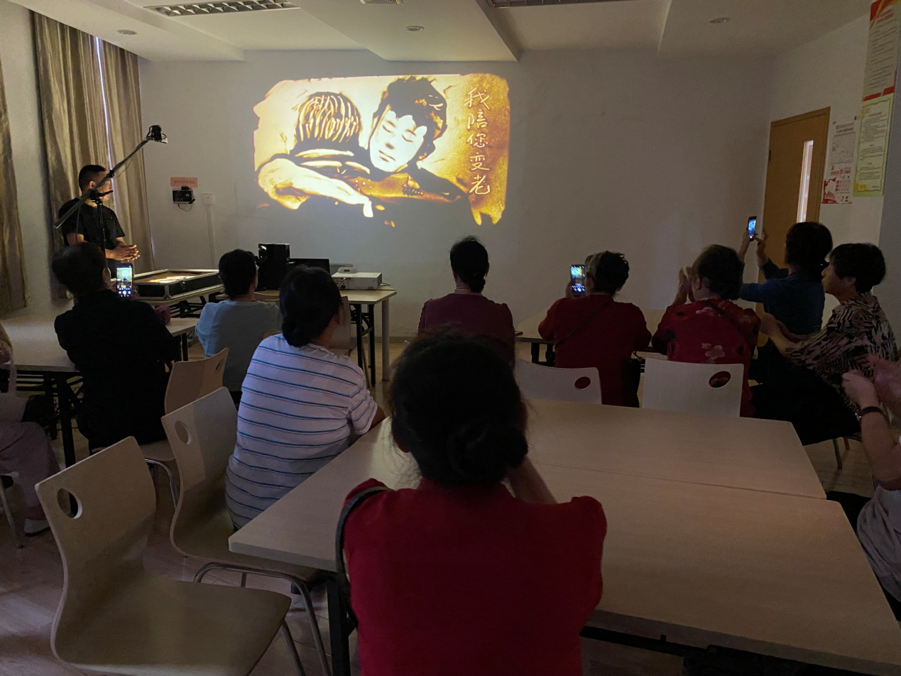 活动现场,老师先向大家展示了一幅幅中共党史,从嘉兴南湖的红船、红军长征、抗日战争到解放战争,老人们在艺术熏陶中了解并回忆党的历史。随后老师继续向大家展示感人的重阳沙画《您养我长大》、《我陪您变老》。老师展示完毕后,邀请现场的老人们上台来尝试着动手制画。活动最后社区向老人们送上重阳糕点,用“吃糕”代替“登高”这个重阳习俗,为他们送上节日的祝福。
