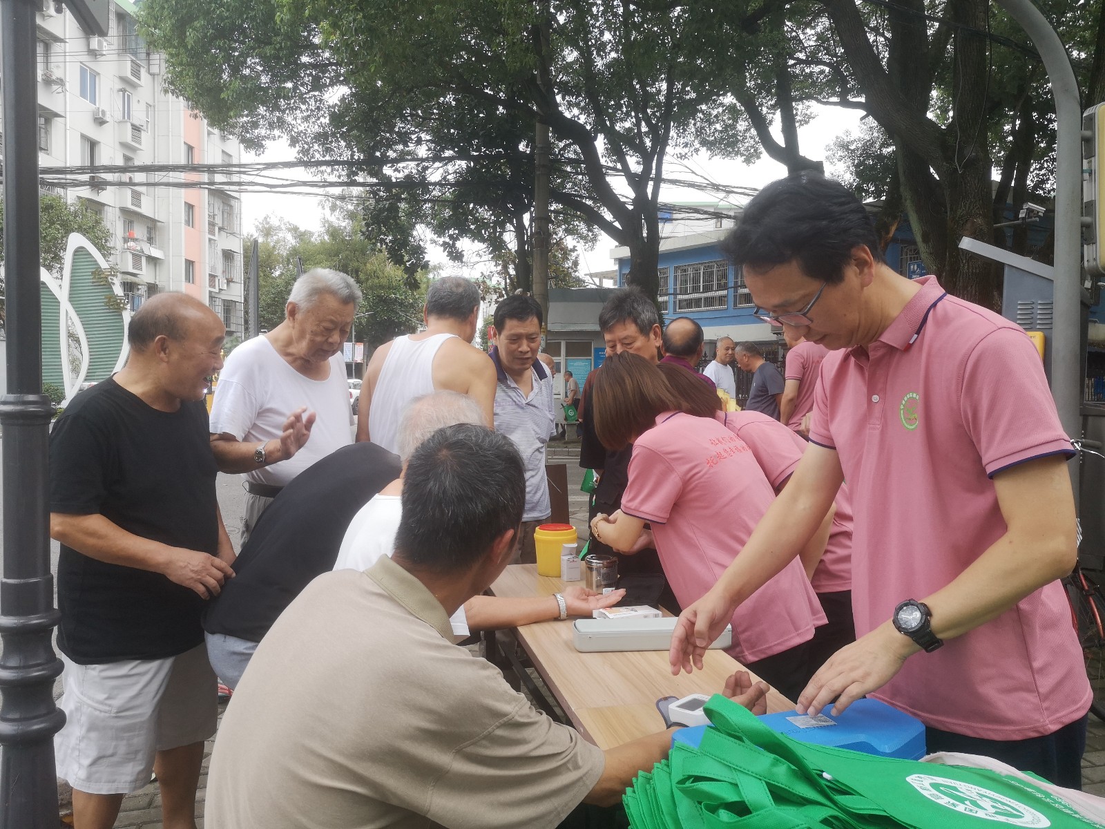 为了提高居民的健康意识,宁波高新区颐养院的志愿者于9月9日上午在绿梅社区新时代文明实践站为老人免费开展“关爱老人,健康同行”测血压主题活动。