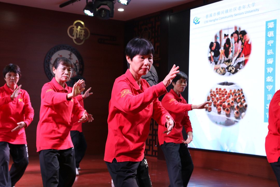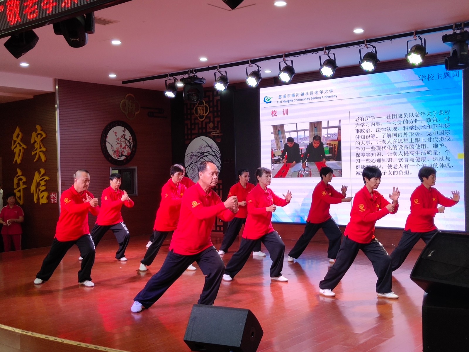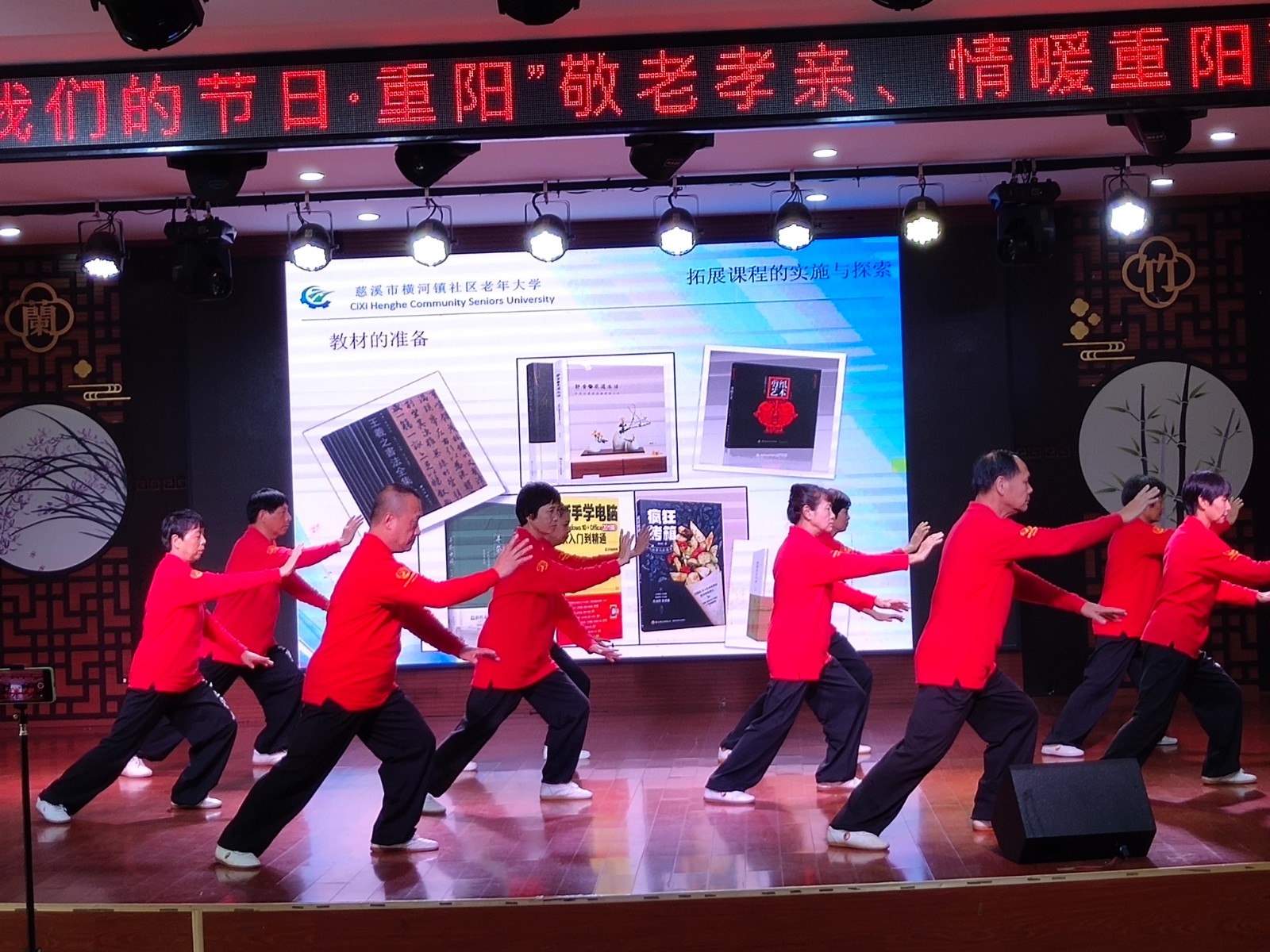 首先,彭桥村黄国飞书记和横河成校阮迪女校长分别向在座的老年朋友们表示诚挚的问候和节日衷心的祝福。紧接着,来自横河成校和慈溪农商银行的表演团队为老人们带来了精心编排的文艺表演,太极、戏曲独唱、器乐、球操、朗诵、歌曲、金融知识和农户普惠宣传,一个个精彩绝伦的节目,使文艺演出高潮迭起,掌声阵阵,到处洋溢着欢乐的气氛。老人们一边吃着长寿面和蛋糕、一边观看着演出,其乐融融,欢度重阳。