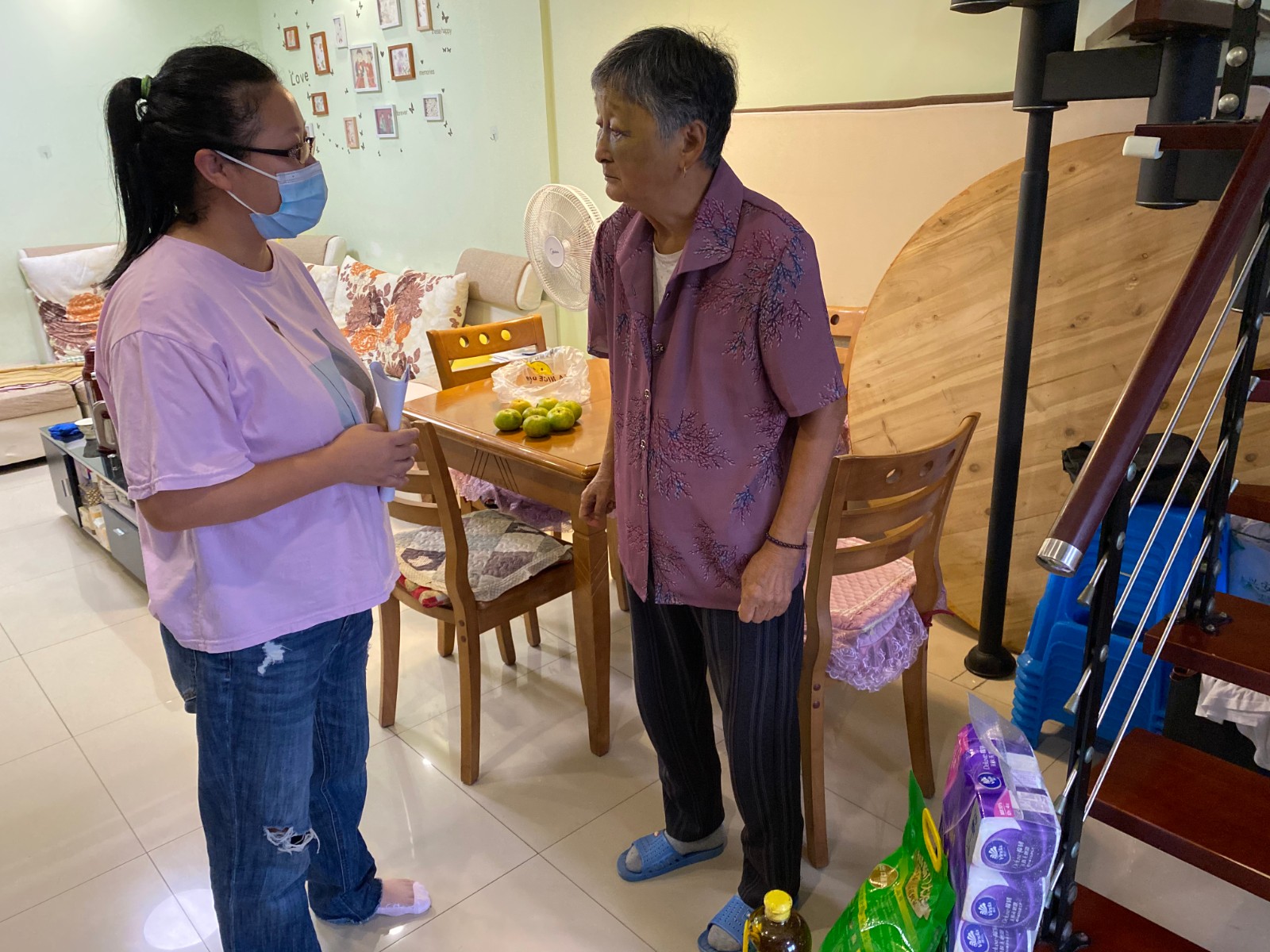 社工和志愿者们首先来到80岁高龄的王志英奶奶,给她送去米、油等慰问品,并且进行了亲切交谈,同时询问了养老津贴发放情况和居家养老上门服务情况。随后一行人来看望高龄老人杨雪琴,并送上慰问品,工作人员与老人拉拉家常,了解老人的困难和诉求,并叮嘱老人,秋冬季节来临,注意保暖。