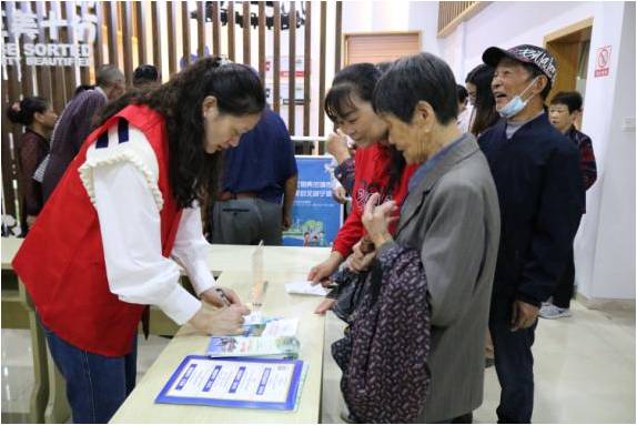 上午9点多,鸿盛社区活动中心已经集聚了不少老年居民。社工简单介绍了游戏规则后,老年居民们人手一张游戏卡,穿梭在游园会的场地中。垫乒乓球、猜谜语、射飞镖、垃圾分类知识问答……每个游戏点位前都排起了小队,大家一边聊天说笑,一边观察着队伍前方的游戏动态,跃跃欲试。“年纪大眼睛不好嘞,飞镖还射的中啊?”别听叔叔阿姨们自嘲眼花,等到上场的那刻,一个个手劲都不含糊,基本上都能射中靶。“身子像个小逗点,摇着一根小尾巴,从小就会吃孑孓,长大吃虫叫哇哇……”在猜谜语点位前,大家念着一条条谜面,开动脑筋。“这是蝌蚪!”答对的居民露出了开心的笑容。而垃圾分类知识问答对于居民来说更是不在话下,什么垃圾要投放到什么颜色的垃圾桶内,大家都“门儿清”。