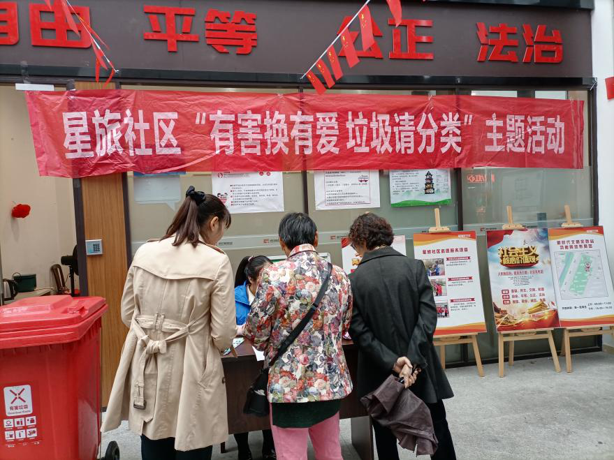 1021,星旅社区组织开展了一场“有害换有爱,垃圾分类靠大家”的有害垃圾兑换活动。