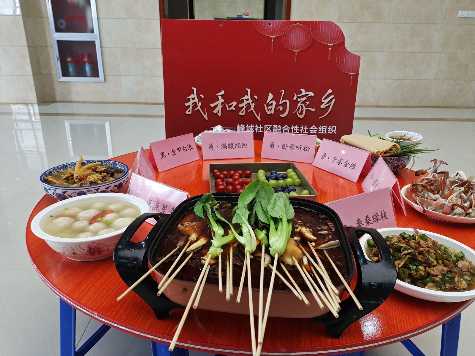 峰城社区融合性社会组织以“我的家乡”为主线,开展一系列主题活动,此次“我的家乡·它的美食”分享会荟聚十道天南地北的家乡特色美食,川·金玉满堂、闽·点点星斗、黑·金甲白浪.....用舌尖上的峰味开启诗意的文化融合之旅。