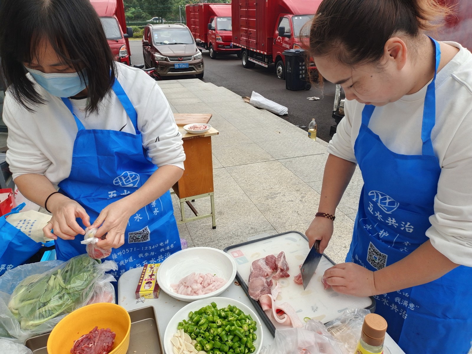 一大早,大家便开始忙碌,准备食材、洗菜切菜、场地布置,互相配合默契,整个画面温馨和谐。中午时分,一切准备就绪,准时开席。没有山珍海味,只是一盘盘带着家乡印记的百姓菜肴,但每个人的脸上都洋溢着幸福与快乐,大家吃得津津有味,相谈甚欢。