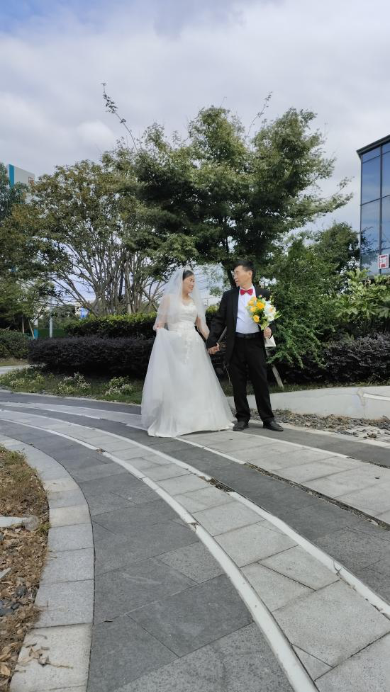进一步弘扬中华民族尊老、敬老的优良传统,积极营造全社会关注老年人的氛围,使辖区的老人树立乐观、健康、积极向上的生活态度,社区组织辖区内老人们免费拍摄纪念婚纱照,网格长布置着室外的场景,帮老人们提裙摆。1025日下午,四对老人陆陆续续来到星旅城会议室,摄影工作组的工作人员各司其职,为他们换上白纱、西装或中式礼服。新郎西装笔挺,神采奕奕;新娘洁白的婚纱妩媚动人,比起年轻人毫不逊色,面对摄影师的镜头,老人们脸上洋溢着幸福的笑容。