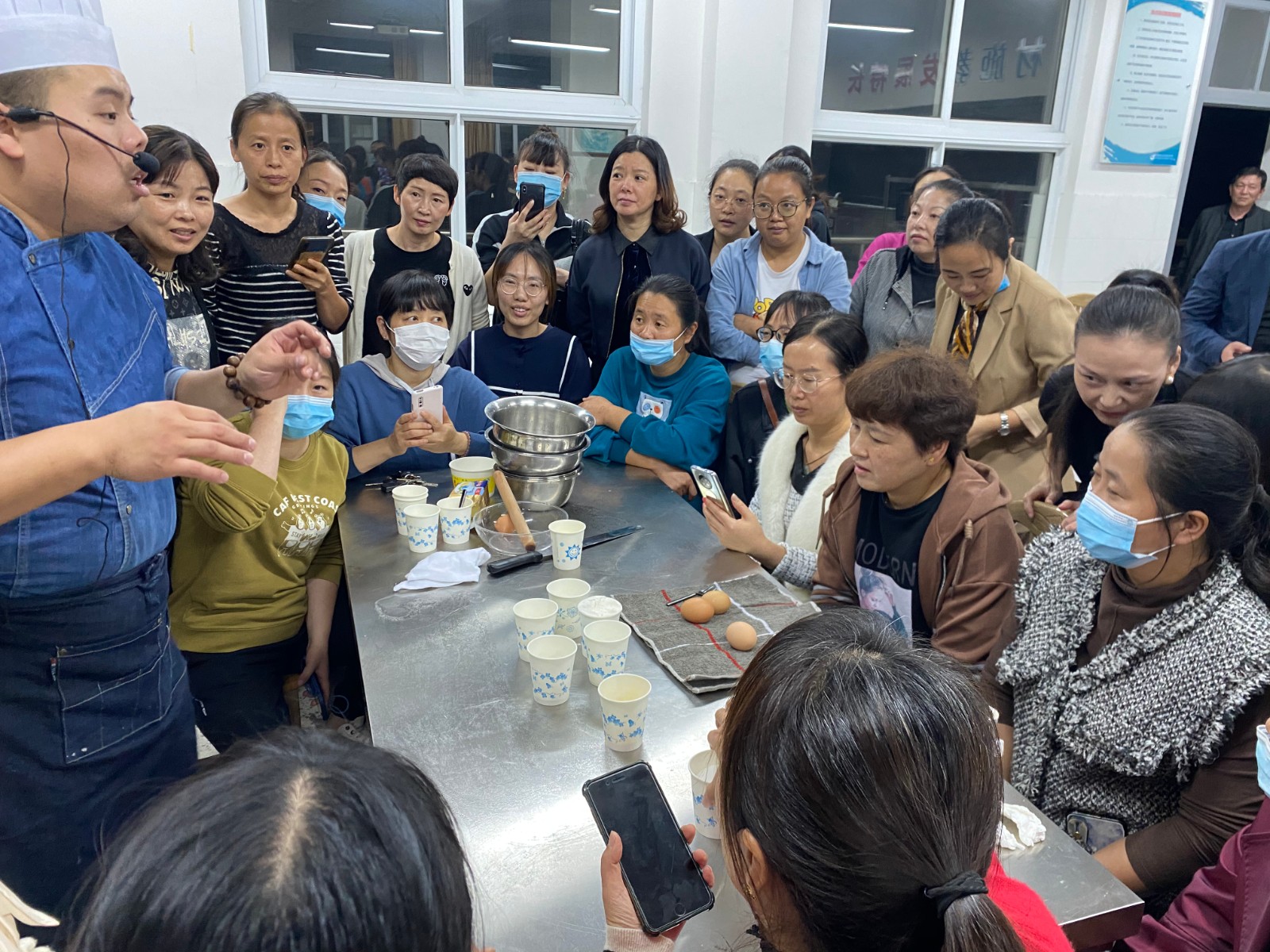 1026日晚,新浦成校花式面包烘焙开班授课,50名学员早早来到培训教室,认真学习花式面包制作技巧。