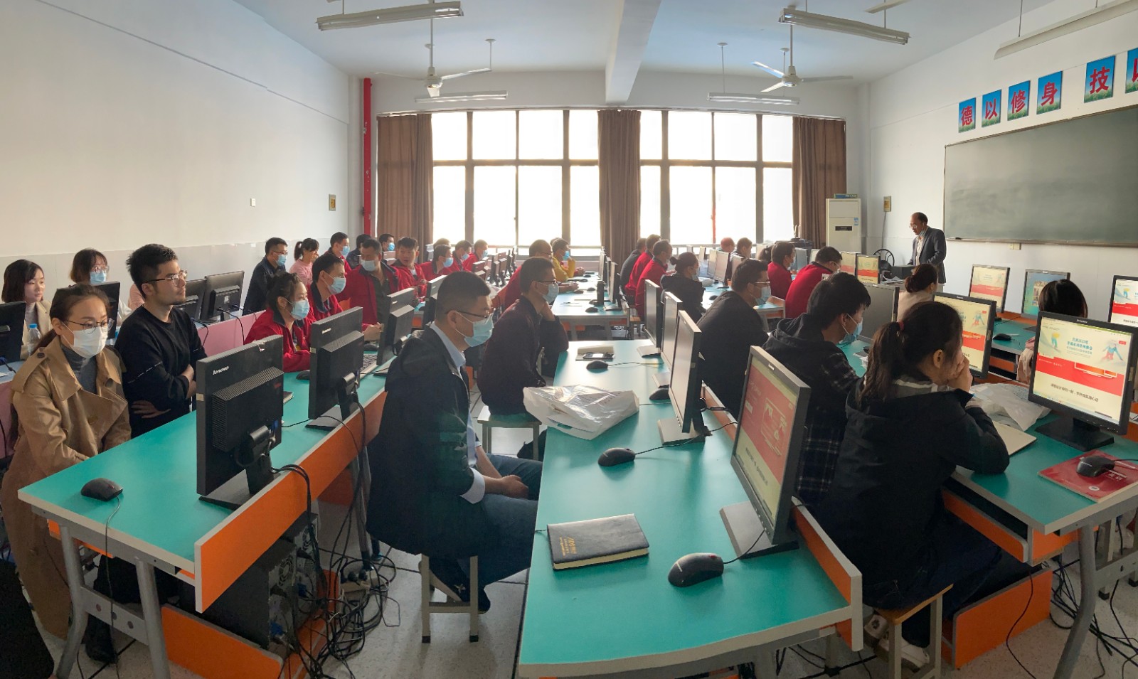 开学典礼后,宁波开放大学余姚学院黄大勇老师为学员们开始了第一堂计算机应用基础能力技能培训课。因报名学员众多,分为上午下午两批进行培训。