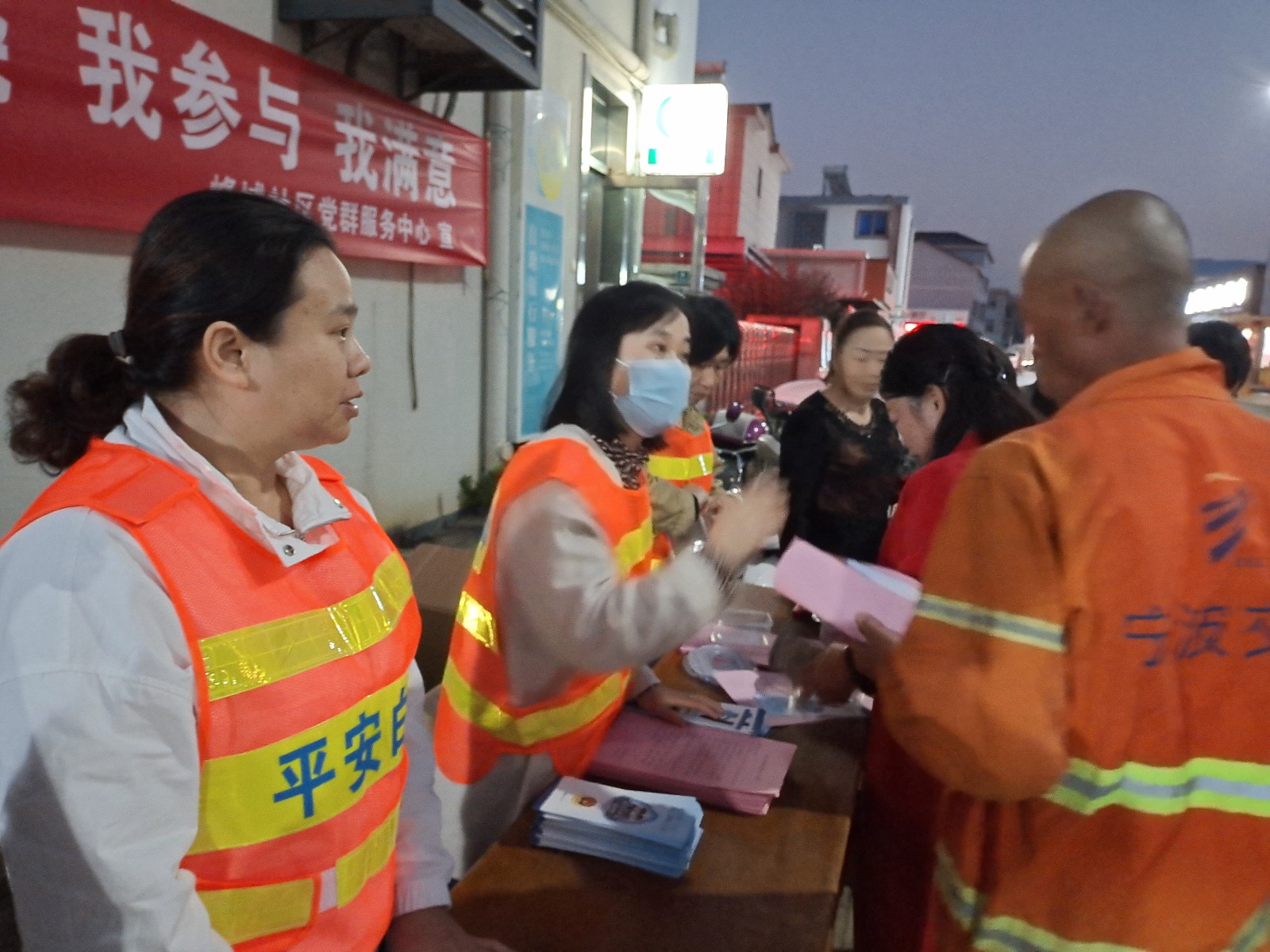 “阿姨,您看,这是《致全区新老北仑人的一封信》,如果接到0571-12340这个电话,先别急着挂断,这是全省社情民意调查专用号码,接到电话积极配合完成调查,接受调查时,要尽量使用“知道”、“满意”等表述清晰的词......”社区工作人员及志愿者为过往居民耐心讲解防盗、防火、防电信诈骗等各类与居民日常生活密切相关的安全知识,大力宣传平安建设工作标准,提高辖区居民应知应会能力、治安防范意识,并为现场参与活动的居民分发了关于“平安三率”工作相关知识的宣传材料和精美小礼物。