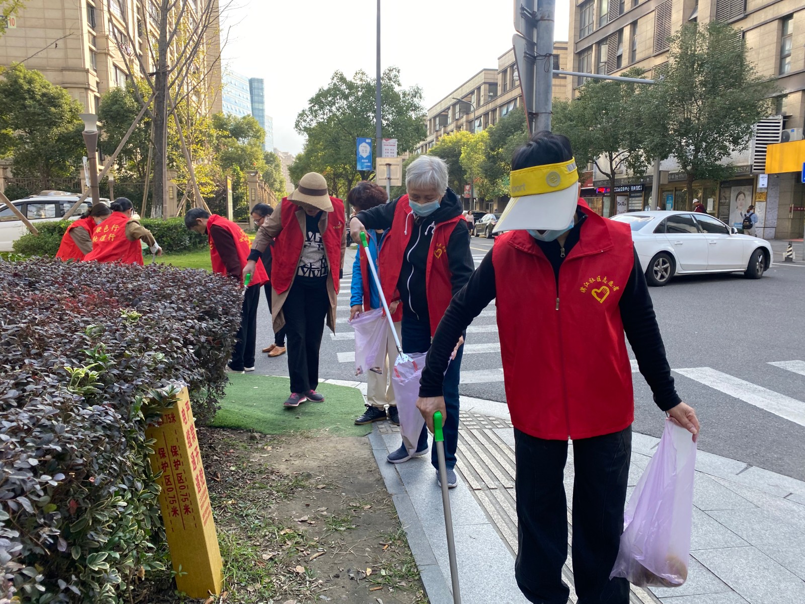 1029日上午,滨江社区的最红星期五志愿团队从社区出发,绕各小区一圈,帮助居民们解决道路绿化带垃圾较多、马路两旁车辆停放不规范、路口指引等问题。