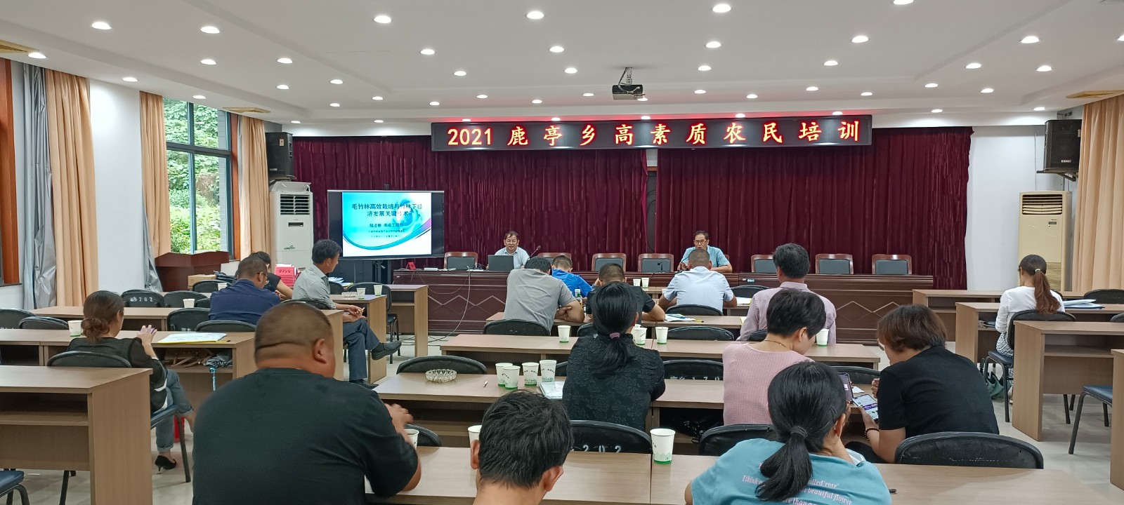 上午9时,成校赵方尧校长主持开班仪式,鹿亭乡副乡长孙建权同志作了讲话。孙乡对参加培训的农民朋友提出了几点要求和希望。他勉励学员们认真学习,掌握扎实的农技知识,为乡村振兴作出力所能及的贡献。简短的仪式后,余姚市农业局周丽芳副局长作了题为《让乡村承载未来,让世界回归乡村》的精彩讲座。周局向学员们分析了我国全面推进乡村振兴,加快农业现代化的大好形势,然后重点讲解了十九大以来中央一号文件的精神及相关农业的政策、法律知识。听了讲座,学员们更明白了农业的重要性,初步掌握了依法务农、依法维权的方法。下午,陆志敏高级工程师为学员们作了关于“毛竹林高效栽培与竹林下经济发展关键技术”的专题讲座。陆工程师分析了宁波竹林产业发展的现状,指出了近年来竹产业滑坡的原因,并提出了重振竹产业的几点建议。他讲授的“毛竹春笋冬出覆盖关键技术”及“毛竹林下食用菌中药材复合经营技术”得到了学员们的一致认可。学员们认真听,仔细记,不时报以热烈的掌声。