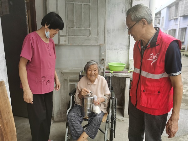 “阿婆,今天是重阳节,我们来给您送米馒头了。”“阿伯,这个米馒头刚做好的,很好吃的。”......在陈华浦社区,一抹红色身影随着爱心食堂的送餐车穿梭在各老年房之间,为辖区爱心食堂的老人们送上重阳节的爱心加餐。