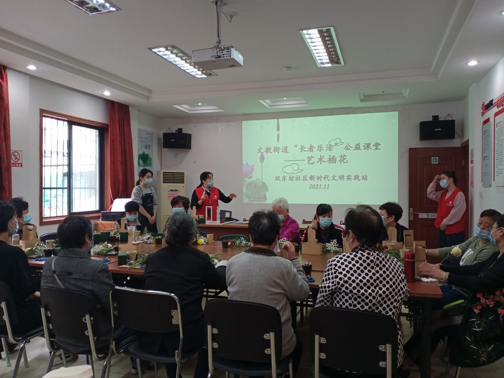 为丰富社区居民的精神文化生活,进一步提升社区居民综合素质和生活品位,践行新时代文明实践精神,11月2日,双东坊社区开展了一场艺术插花活动。