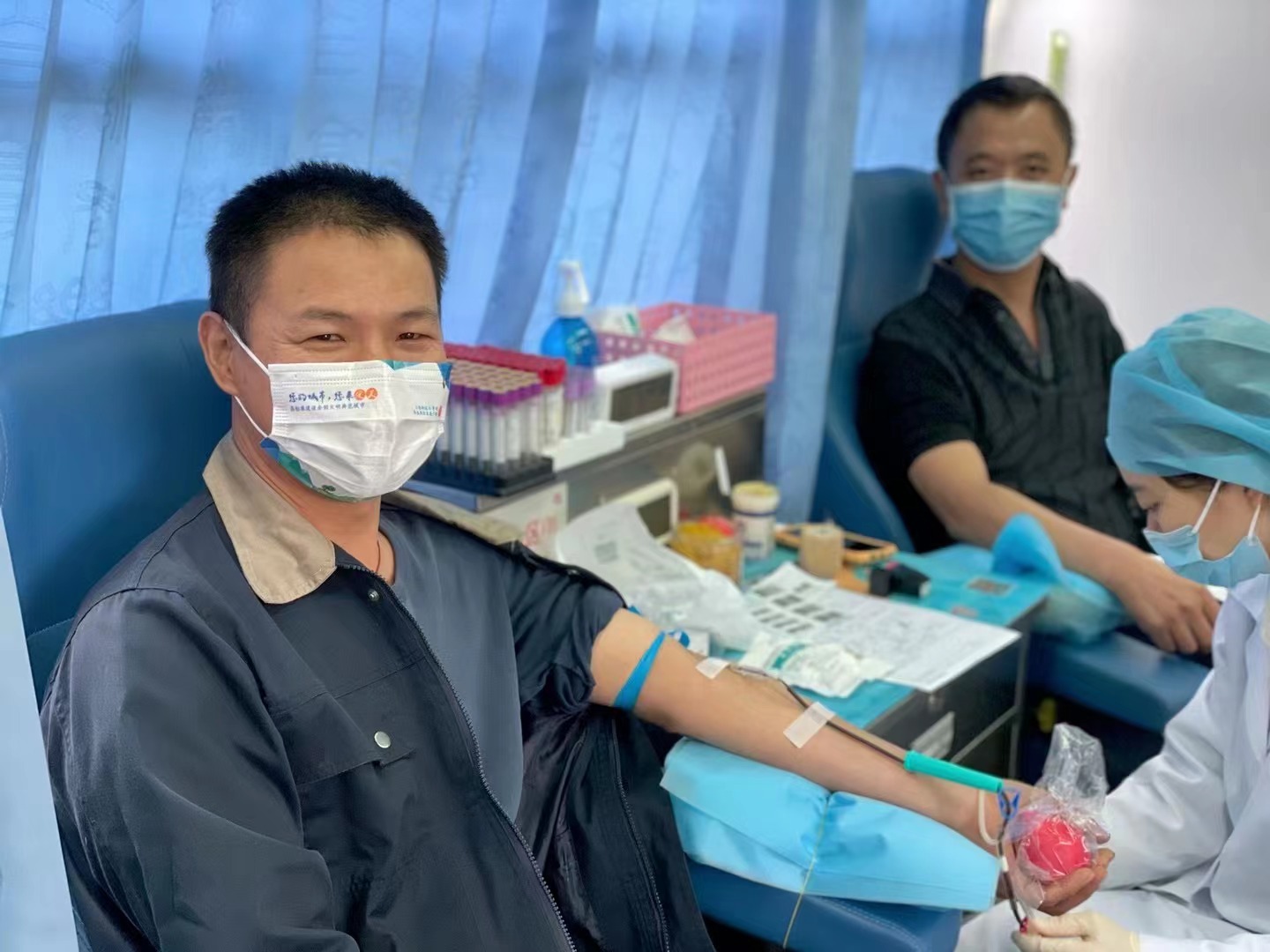 当日上午8点,采血开始。来自新模村的李学玉,第一个挽起衣袖。李学玉在谢墅工业西区一家民营企业工作,得知献血倡议后第一时间报名。“前段时间家里有人生病,看到了医院血库平时面临的压力,我想为他人、为社会贡献自己的一点力量。”现场,参与献血的市民在社区志愿者的引导下有序排队、扫描二维码。填写登记表,测量血压后,市民们在医护人员的引导下进行献血初筛和采血。参与献血的居民中,不少人是兄弟档、夫妻档、姐妹档。