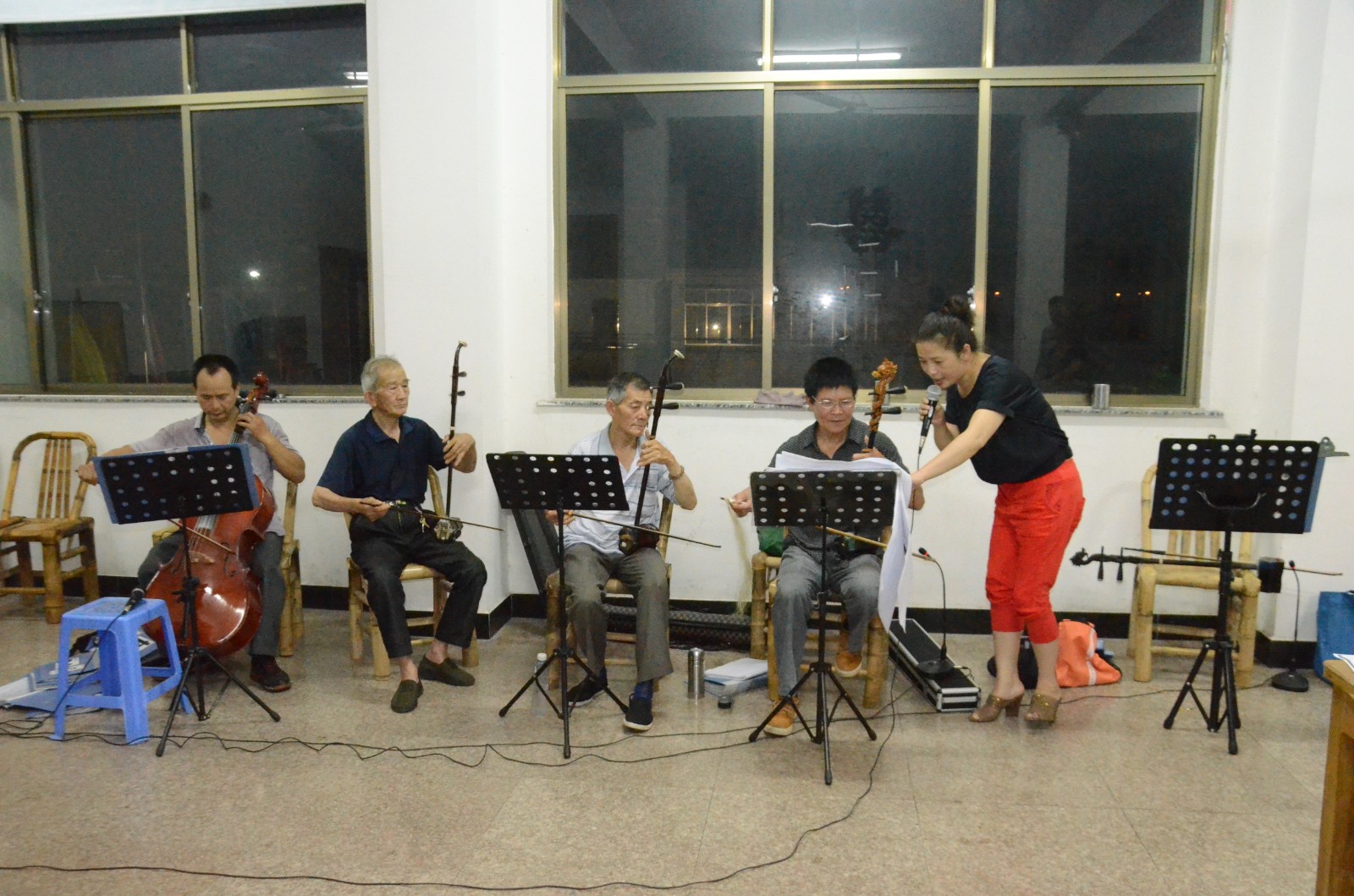 目前,这个文体协会共有成员19人,他们大都是村里的戏曲爱好者,有普通工人,有企业老板,还有更多的老年人。虽然是自发组织的民间社团,但协会内分工明确,有固定的训练时间和场地。张国新主要负责协会的日常事务,孙金连负责乐队的主要事务,他们每逢周四晚上7点到9点集中训练,风雨无阻。其中乐队中有一位85岁的二胡爱好者傅利春,这两年多的训练从未缺席,着实让人感叹这艺术的魅力和他们对传统戏曲的痴迷。为了提高演出效果,张国新自己出资配备了音响设备和一把大提琴。