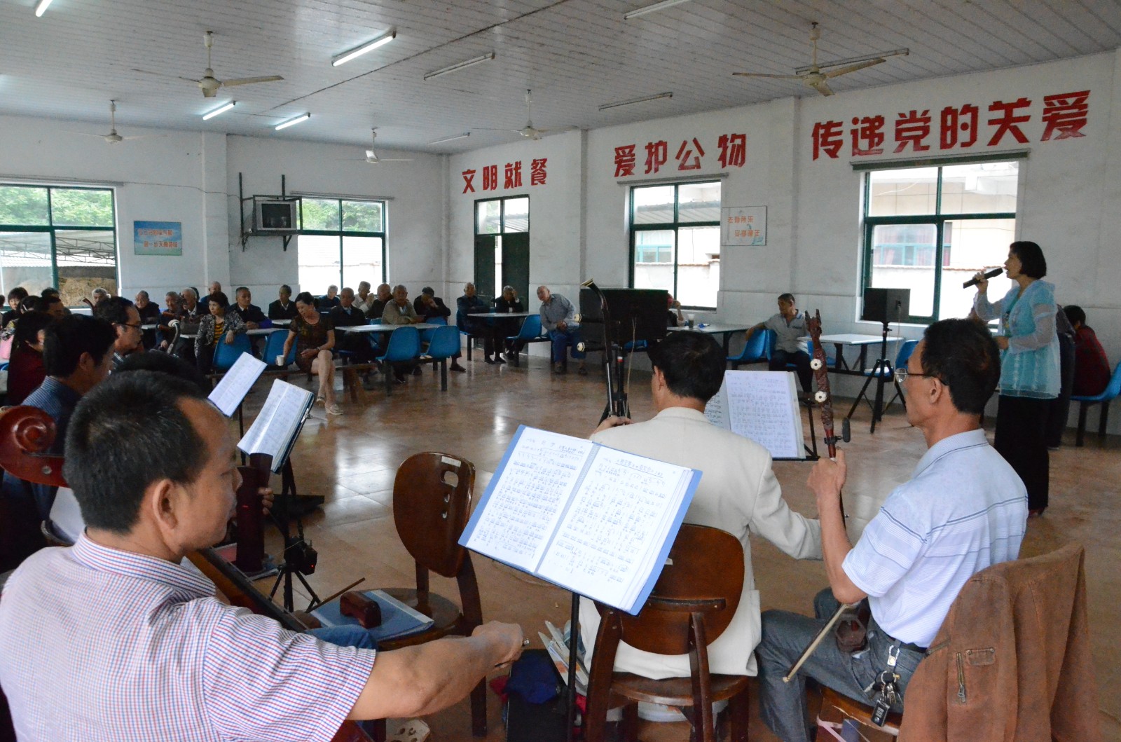 协会一般不参加营业性演出,社团成员们完全出自对艺术的爱好,自发地在规定时间,规定地点一起训练,从而提升自身的演奏和演唱能力,提高自己的艺术修养。有时候,他们也会参加一些公益性演出。如:为陆埠敬老院的老人送温暖,受邀为村民们送上戏曲“大餐”,到三七市、丈亭、阳光公寓等地与其他戏曲爱好者共同演出。文体协会中藏龙卧虎,有很多出色的民间艺人,有唱越剧的,唱姚剧的,加上专门的伴奏团队和主要负责人,可以说,麻雀虽小,五脏俱全。这个民间社团组织让演出者实现了自身价值的提升,更是给观众们带来了无限的乐趣。