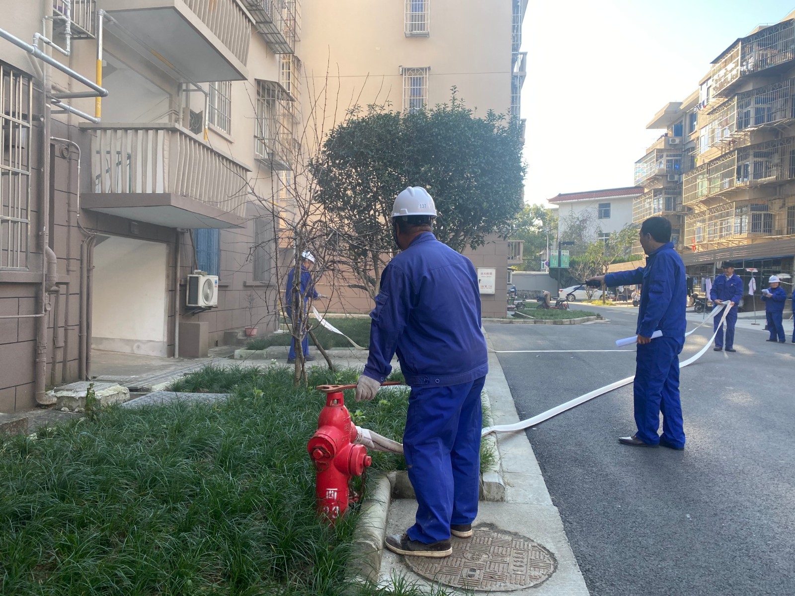 今天是119全国消防日,石化三建社区联合海纳物业在小区开展消防演习。