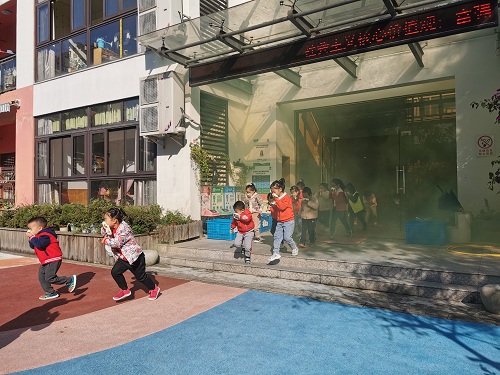 11月9日上午9点,一阵急促的警报声在博悦幼儿园里拉响,各班的小朋友们在老师的指挥,按照教学楼里的消防警示标识,有序地离开教室到达室外的安全场所。为了提高小朋友的安全知识,营造安全教育氛围,天悦社区联合博悦幼儿园开展网格内的消防安全主题活动。