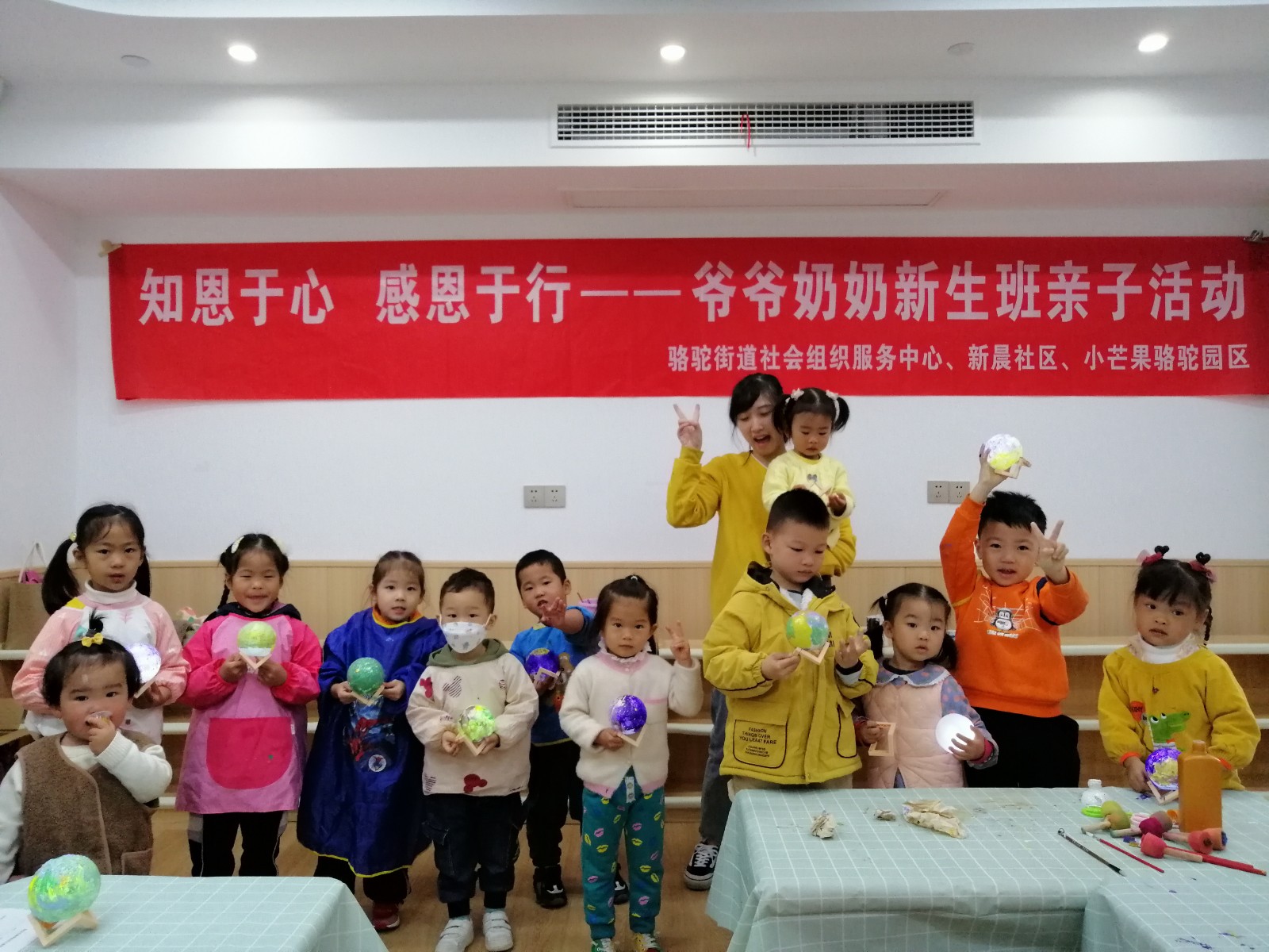 1月13日上午,新晨社区开展了“知恩于行,感恩于行”亲子活动,本次活动旨在帮助小朋友了解感恩,学会感恩,希望在未来成长的道路上能常怀感恩之心。活动不仅邀请了辖区内的多组亲子家庭参加,更邀请了爷爷奶奶幼儿志愿服务队的志愿者奶奶参加,现场志愿者奶奶分享了感恩小故事,通过故事影射潜移默化地向小朋友们传递了怀有感恩之心的重要性,并让小朋友们在现场向陪同的爸爸妈妈、爷爷奶奶大声说“谢谢你们,你们辛苦了,我爱你们”,活动现场温馨且充满喜悦,不仅孩子们有收获,爸爸妈妈也感到了暖暖的幸福。最后大家一起开始了手工制作,小朋友们在浓浓的温馨氛围中收获了满满的喜悦,整个活动也在愉快轻松的氛围中获得了圆满结束,赢得了家长们的热烈欢迎和高度赞扬。