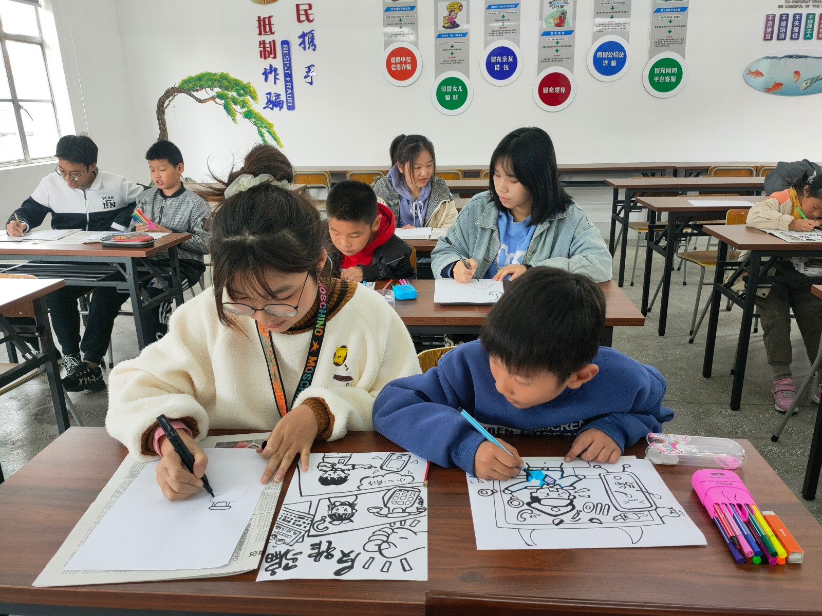 为进一步做好平安镇海建设宣传工作,提升社区内青少年防范电信诈骗意识,今天下午,五里牌社区团支部携手宁波大学志愿者组织网格内青少年开展“你我青春携手,共绘平安社区”主题绘画活动,青少年们通过对电信网络诈骗防范知识的深入理解,用一双双巧手绘制出一幅幅充满童趣的作品,寓教于乐,妙趣横生。