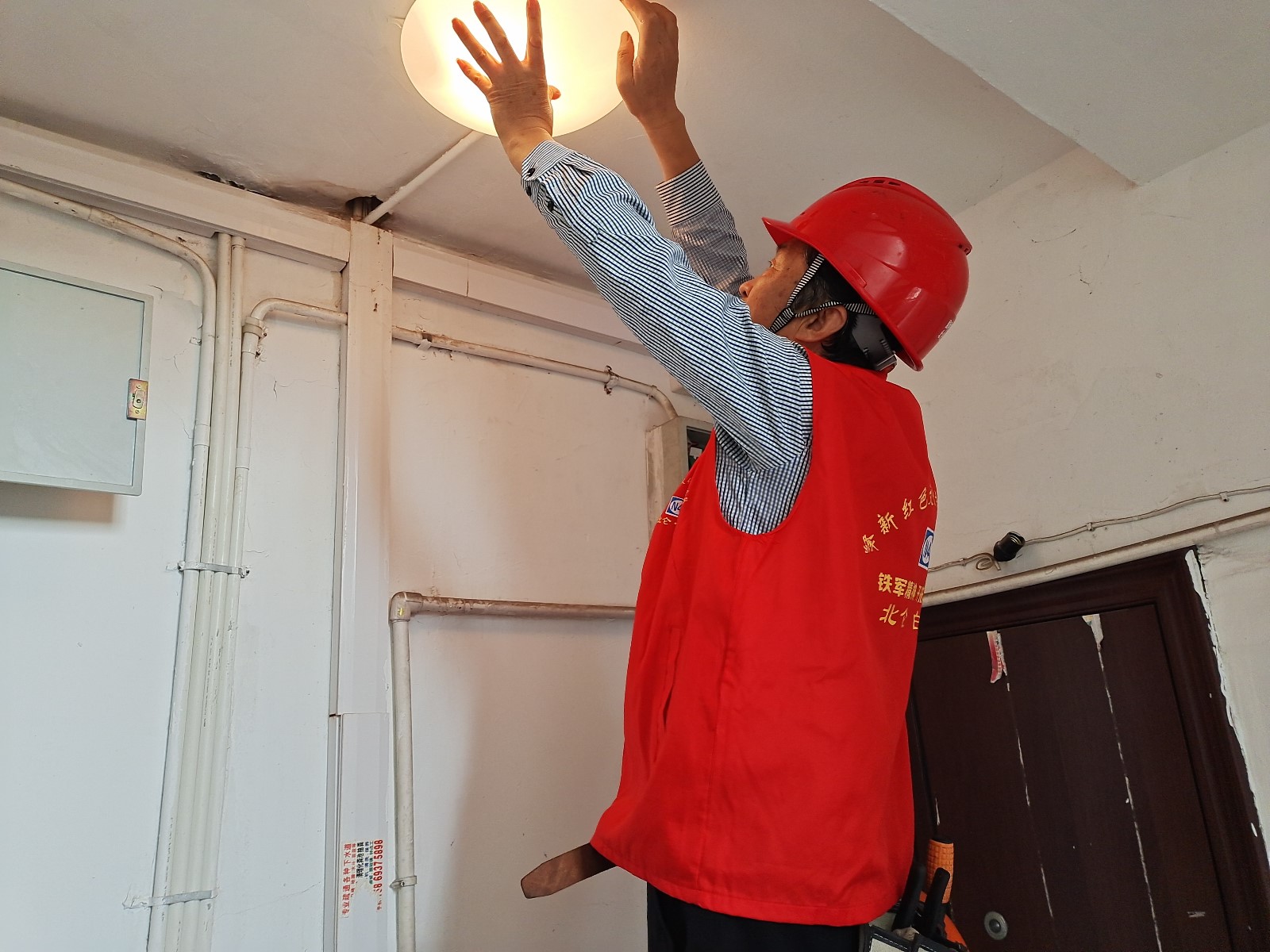 峰城社区作为一个农居混杂的无物业老旧小区,偶有灯具不亮、线路损坏、空开跳闸等稀奇古怪的用电问题。向来热心的周平东退休后,被居民们推选为社区委员和红色业委会成员,他一如既往地积极参与社区志愿服务,发挥自己所长,为保障辖区内居民用电的安全可靠,成立24小时应急小分队,无偿为居民进行表内用电维修服务,及时有效地消除潜在的用电安全隐患和风险,并向居民宣传普及安全用电知识,受到了居民们的一致好评。同时结对高龄、独居老人,自掏腰包购买材料帮助他们更换电线和开关面板,顺带检查煤气减压阀和软管,确认各项指标安全,预留365阳光连心卡,和老人约好,如有需要,只要拨打卡上的电话,就会第一时间赶到,为他们撑起用电安全保护伞。除了一般性家庭用电维修外,他所在的志愿服务团队,多次联系党建资源为辖区内公共用电设施进行抢修、维护,为建设文明、和谐、靓丽新社区贡献自己的力量。