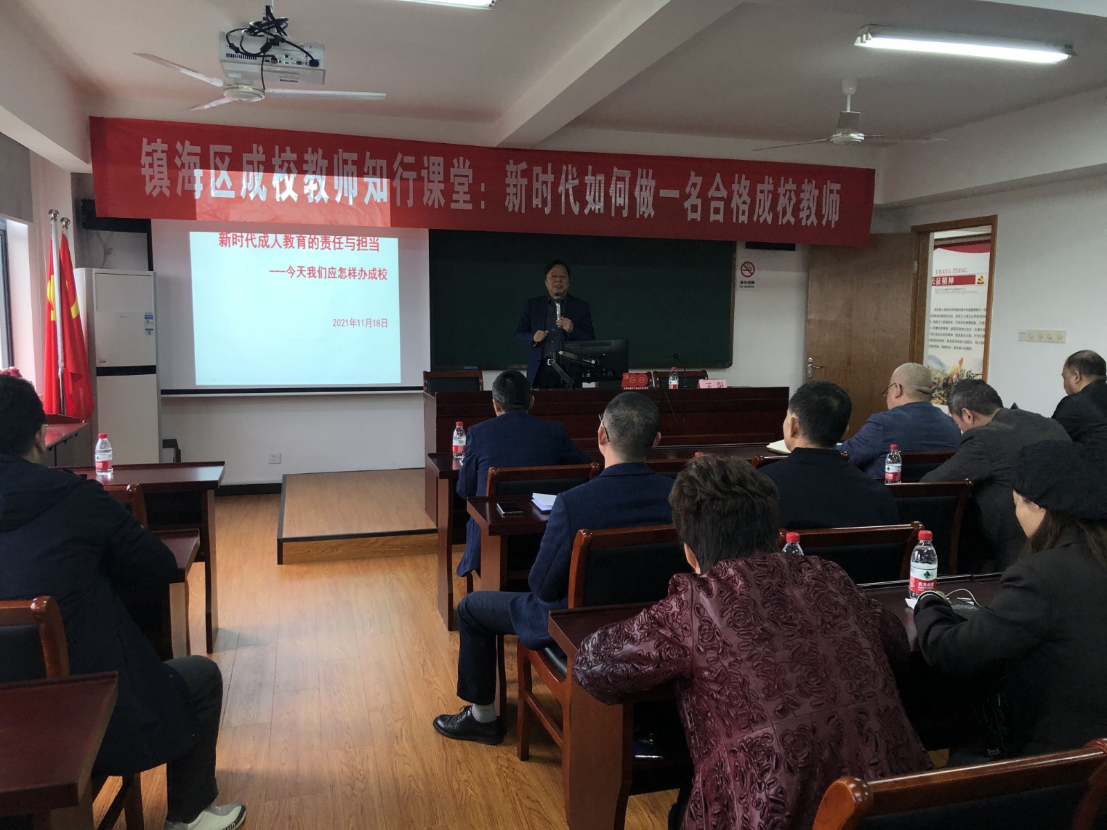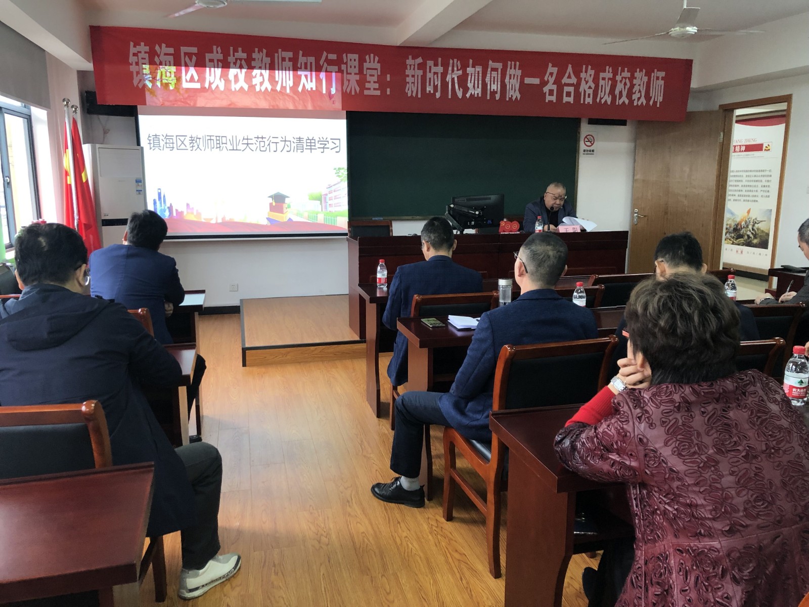为深入贯彻落实立德树人的根本任务,进一步加强师德师风建设,从而提升全体教师的师德素养和专业水平,11月18日,镇海区全体成校教师集中在骆驼成校,开展知行课堂——新时代如何做一名合格的成校教师集中学习活动。