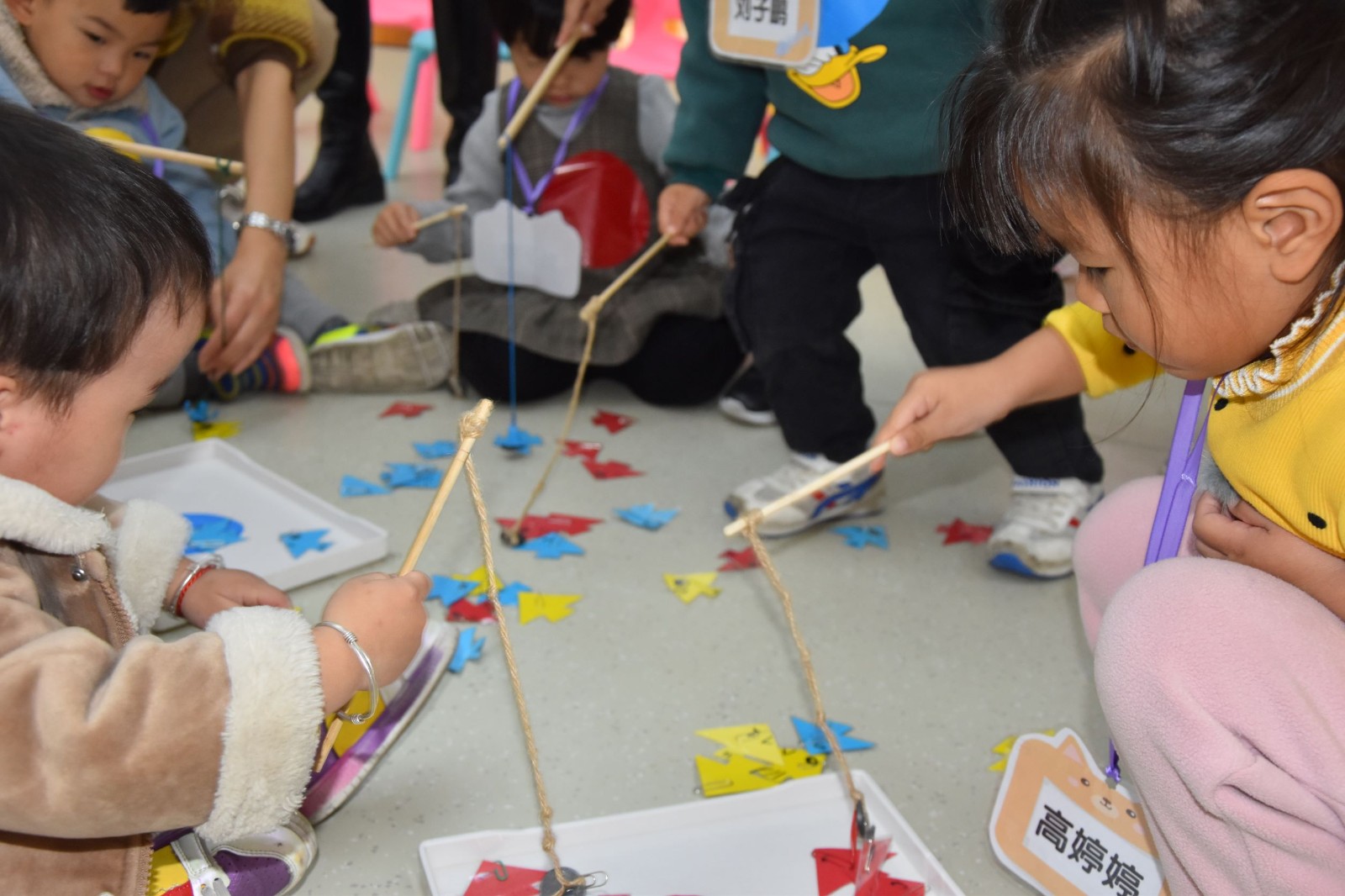 活动中,李老师引导小朋友做自我介绍,告诉老师、同伴自己的姓名和年龄,搭建交流的桥梁。李老师通过钓鱼游戏,引导小朋友用鱼竿吊起小鱼儿,放在对应颜色的水缸里,提高了小朋友的手指灵活度,培育小朋友辨别颜色的能力。之后,李老师带领小朋友化身鱼儿游来游去,家长化身大鲨鱼,小朋友要在大鲨鱼时不时的进攻下及时回到呼啦圈安全屋,培养了小朋友的动作协调能力。最后,李老师组织小朋友开展小小运动会,跳圈圈和过独木桥,锻炼了小朋友的跳跃运动能力。