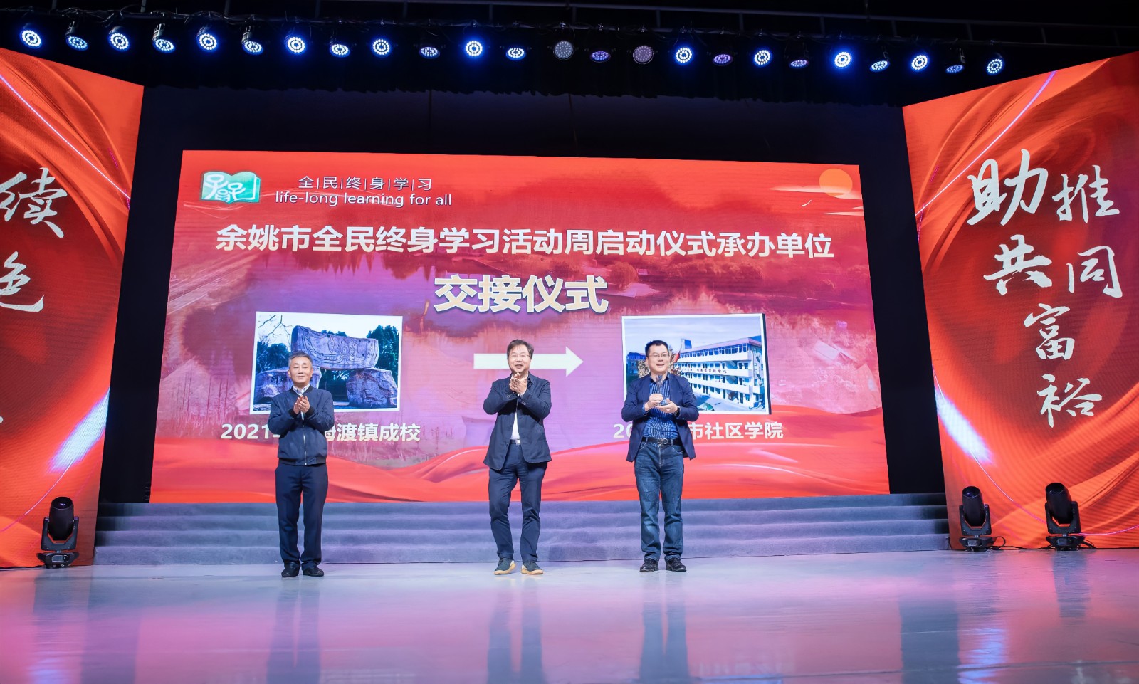 启动仪式上,“余姚市市民学习之星”、“余姚市社区教育优秀工作者”、“余姚市老年教育优秀志愿者”、“2021年度余姚市社区教育宣传工作先进单位”、“宁波市终身教育教师技能才艺大赛先进个人”、宁波市首批终身教育“双高”工程建设项目和2020年度省现代化学校受到表彰。由河姆渡镇成校选送的歌舞《听我说》、市老年大学选送的姚剧《唱支山歌给党听 》、市社区学院选送的诗朗诵《我心向党  逐梦起航》穿插于表彰间隙,展示了终身教育优秀学共体风貌。启动仪式在承办方交接仪式中告一段落。