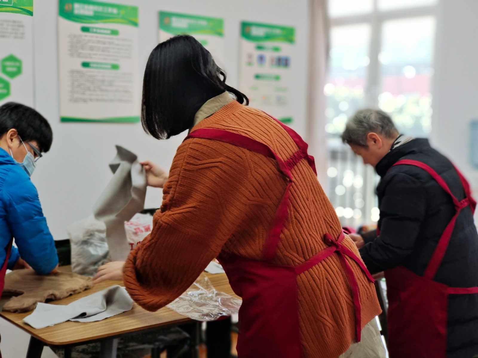 社区陈书记为大家讲解道:“这次的包包不需要上口金,制作起来还比较简单,但是绒毛比较滑,会比较考验大家的缝制功底哦。”随后陈书记为大家讲解了详细的缝制流程,居民们根据讲解和示范,按部就班地缝制起来。将零碎且毛茸茸的的材料缝制起来需要的不单单是技巧,更是耐心。居民们用自己灵巧的双手让一个个软糯实用的手腕包呈现在眼前,在作品中仿佛就能看见她们眼中的认真与温柔。