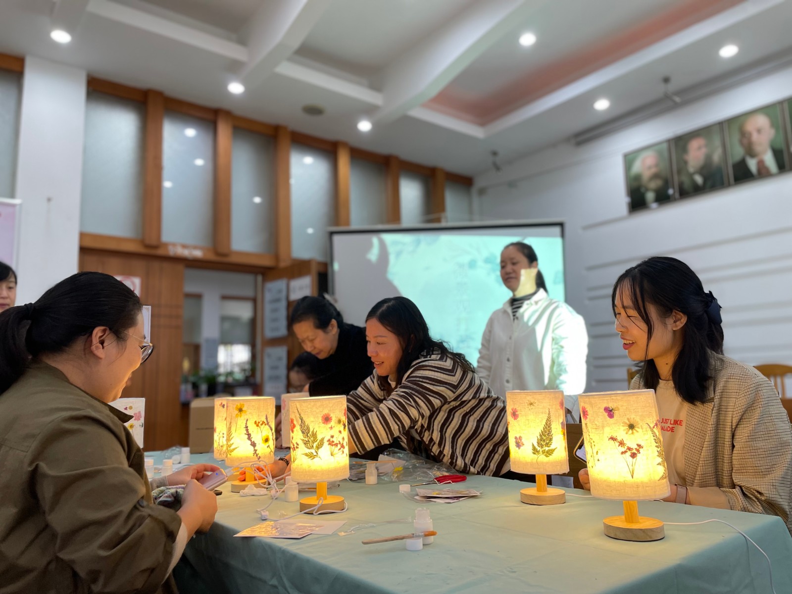 20211126日,为丰富居民业余生活,提高居民社区参与度,深入建设和谐社区,育才社区漂亮阿嫂工作坊开展了一次巧手做干花灯活动。